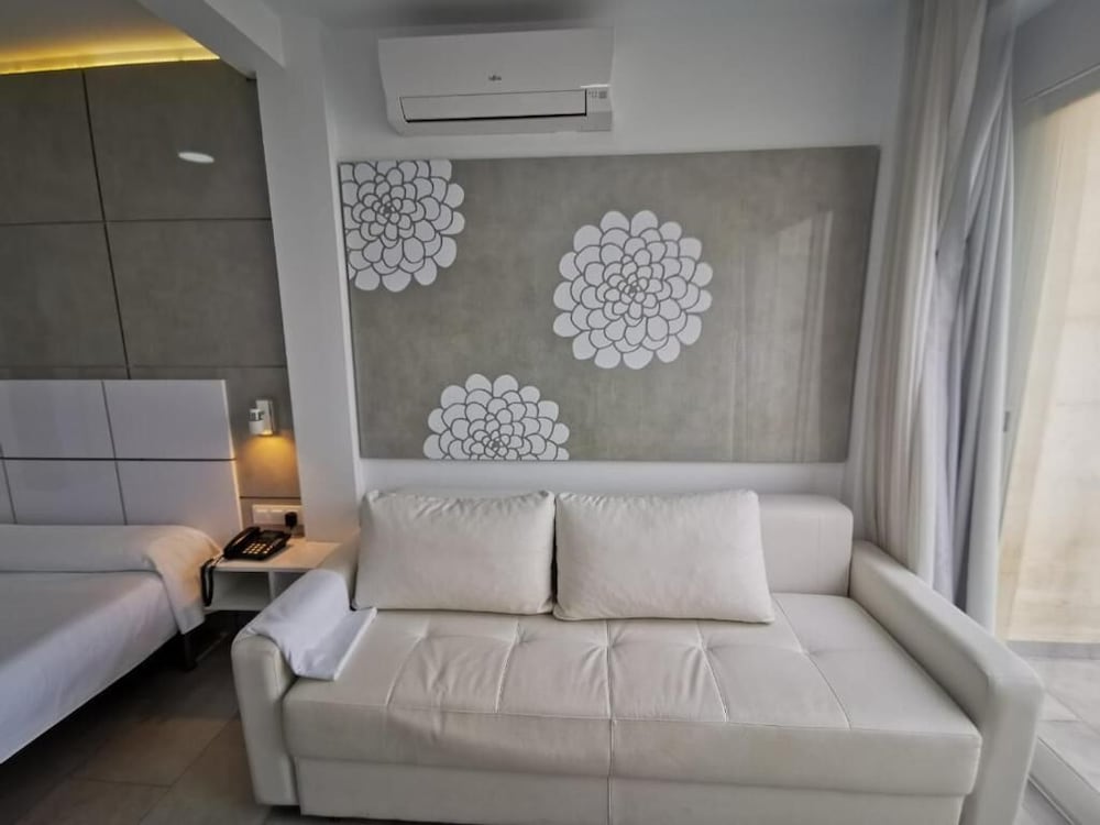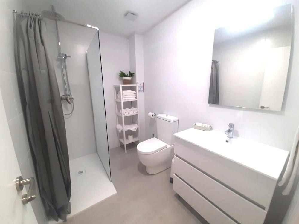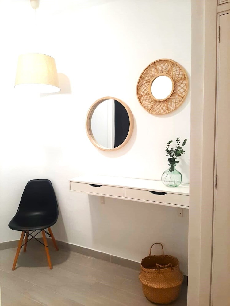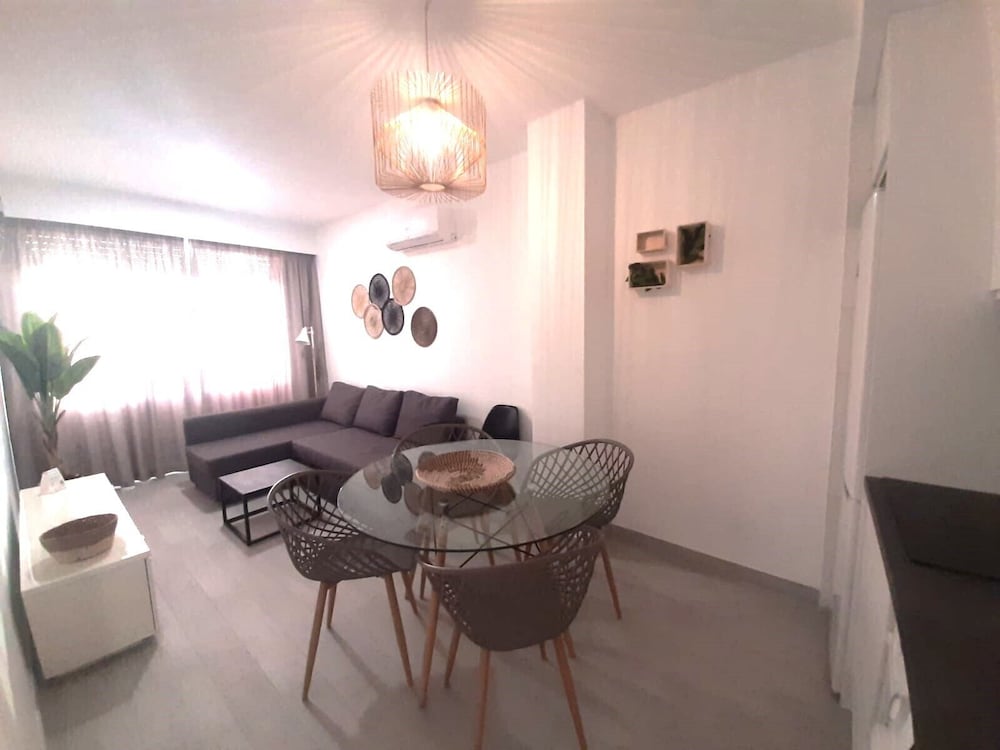 We stayed in one of the apartment rooms—the hotel has three in total. It had a well-equipped kitchen with a large refrigerator, and the apartment itself was very spacious, with two bedrooms and a living room. Everything was comfortable. The beach is directly behind the hotel, just a one-minute walk away. A large Mercadona supermarket is about a 10-minute walk, and bus 32 stops nearby, providing easy access to the town center. Overall, it was a very good stay.