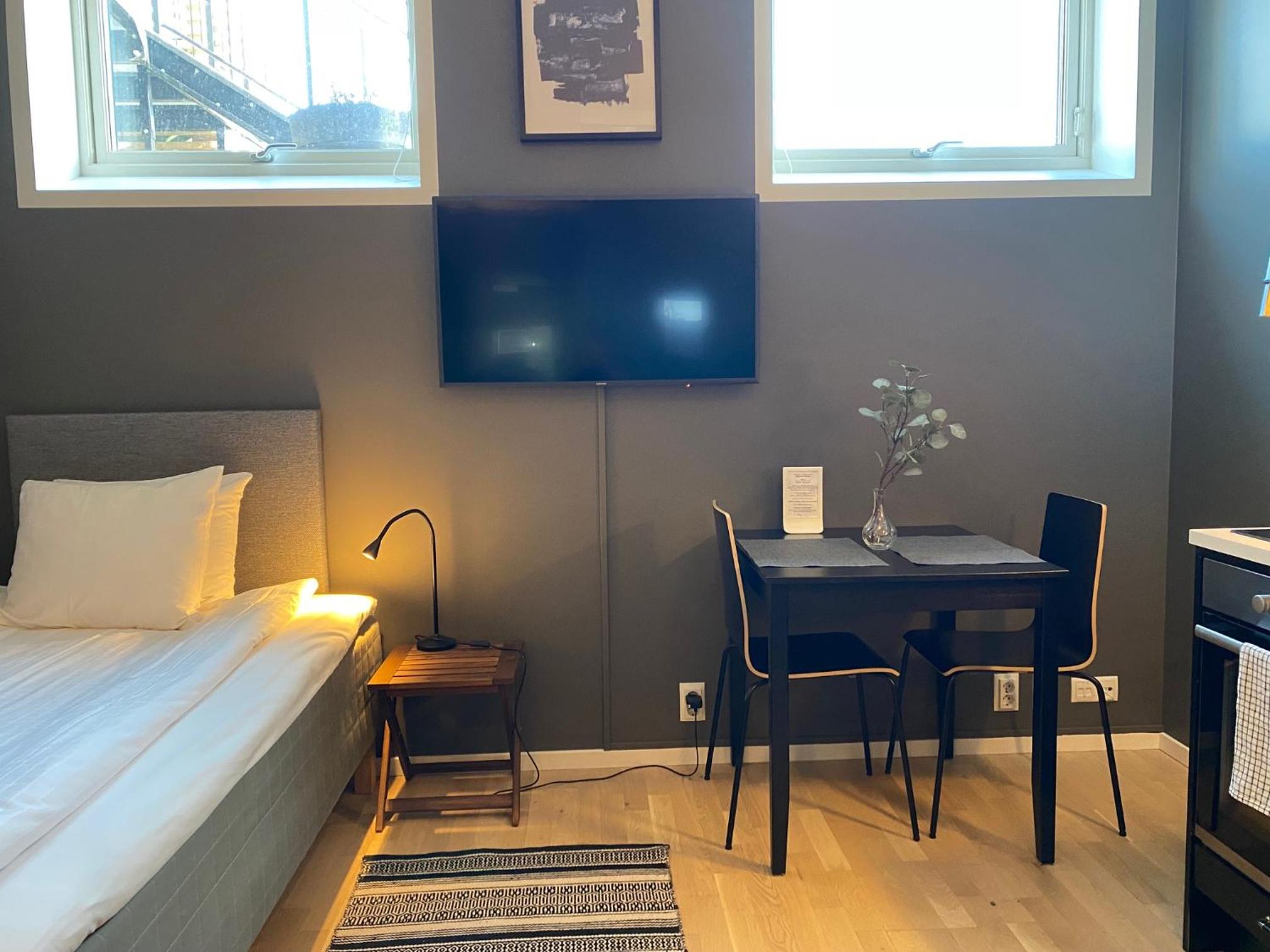 Skönt med själv in- och utcheckning, mycket fina lägenheter där det mesta man behöver finns. Hyfsat bra läge med gångavstånd till Norrvikens pendeltågsstation. Har man bil är det toppenläge.