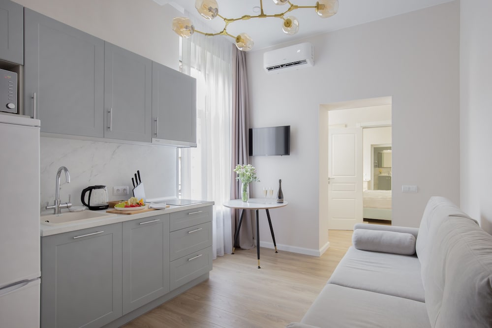 Cozy Rooms: Relax in one of the 16 air-conditioned rooms with kitchens, 35-inch LCD TVs, and free Wi-Fi. Feel at home with full-sized refrigerators, stovetops, safes, and desks.