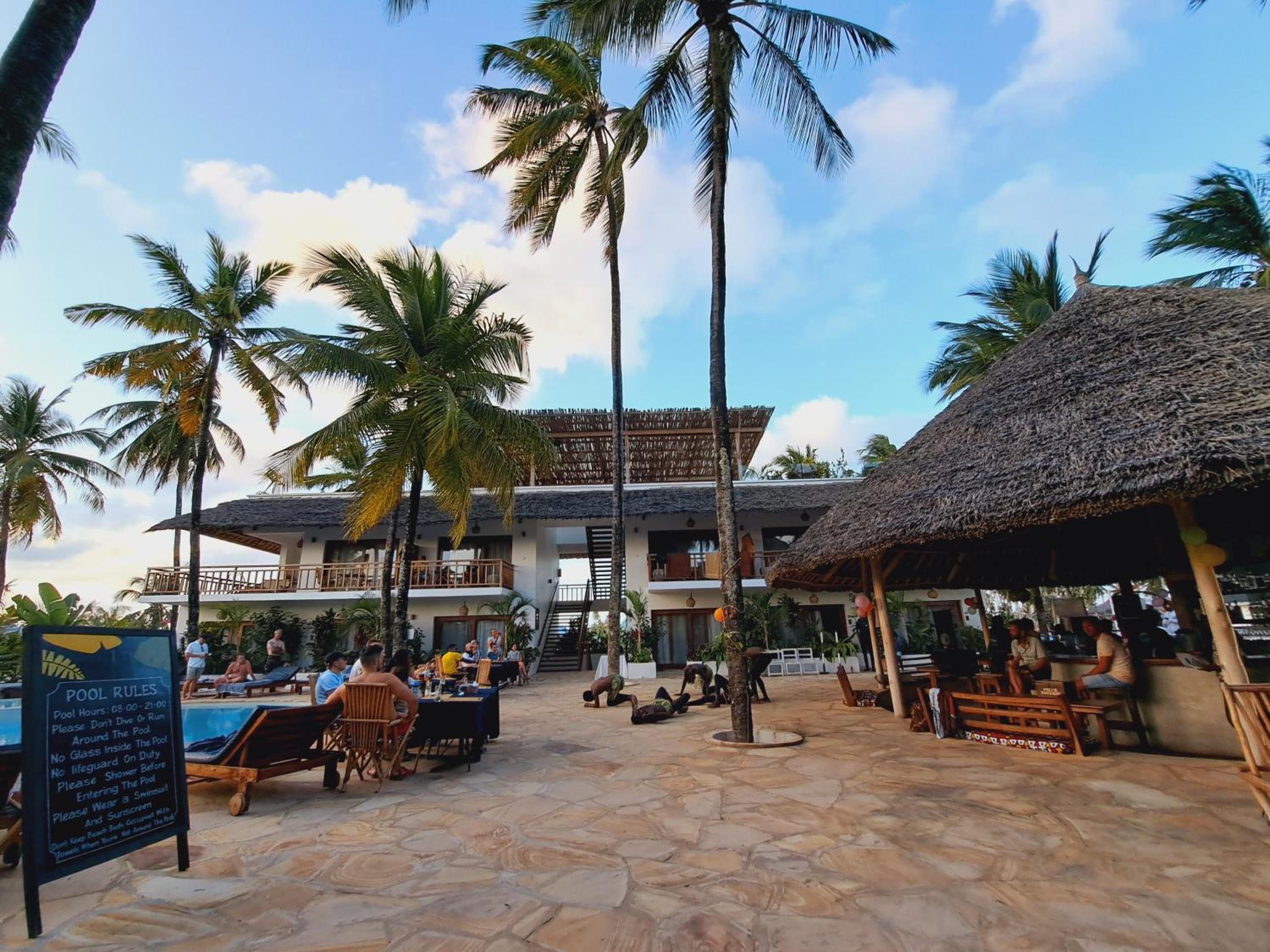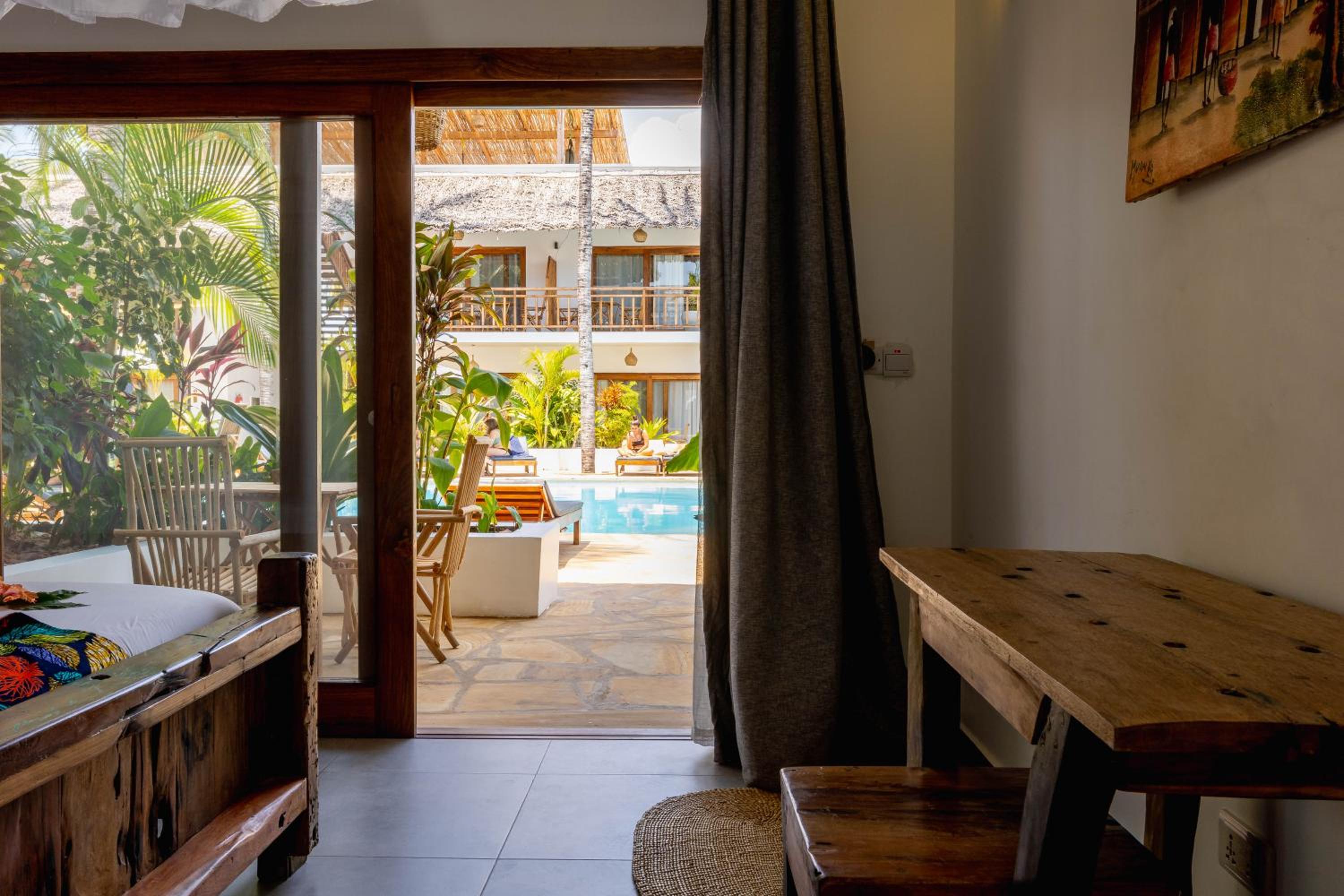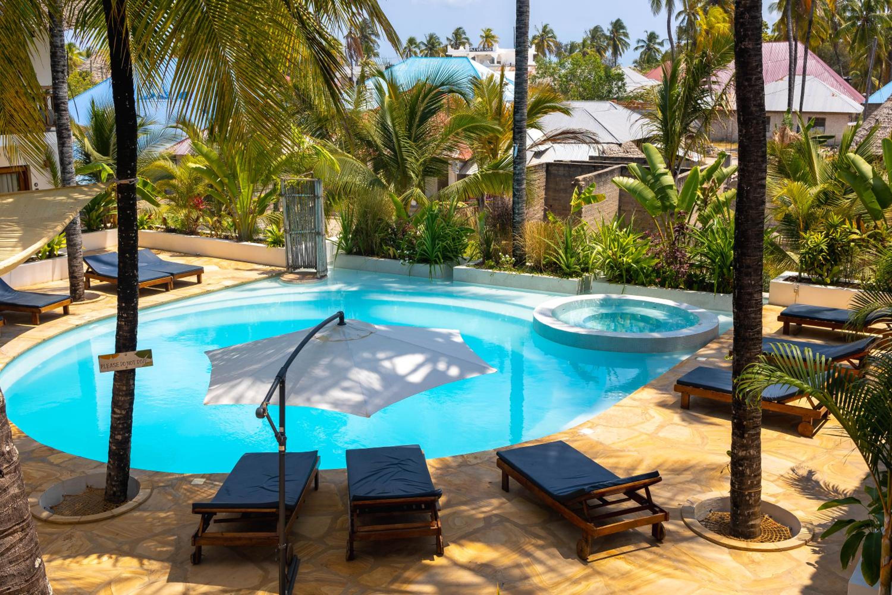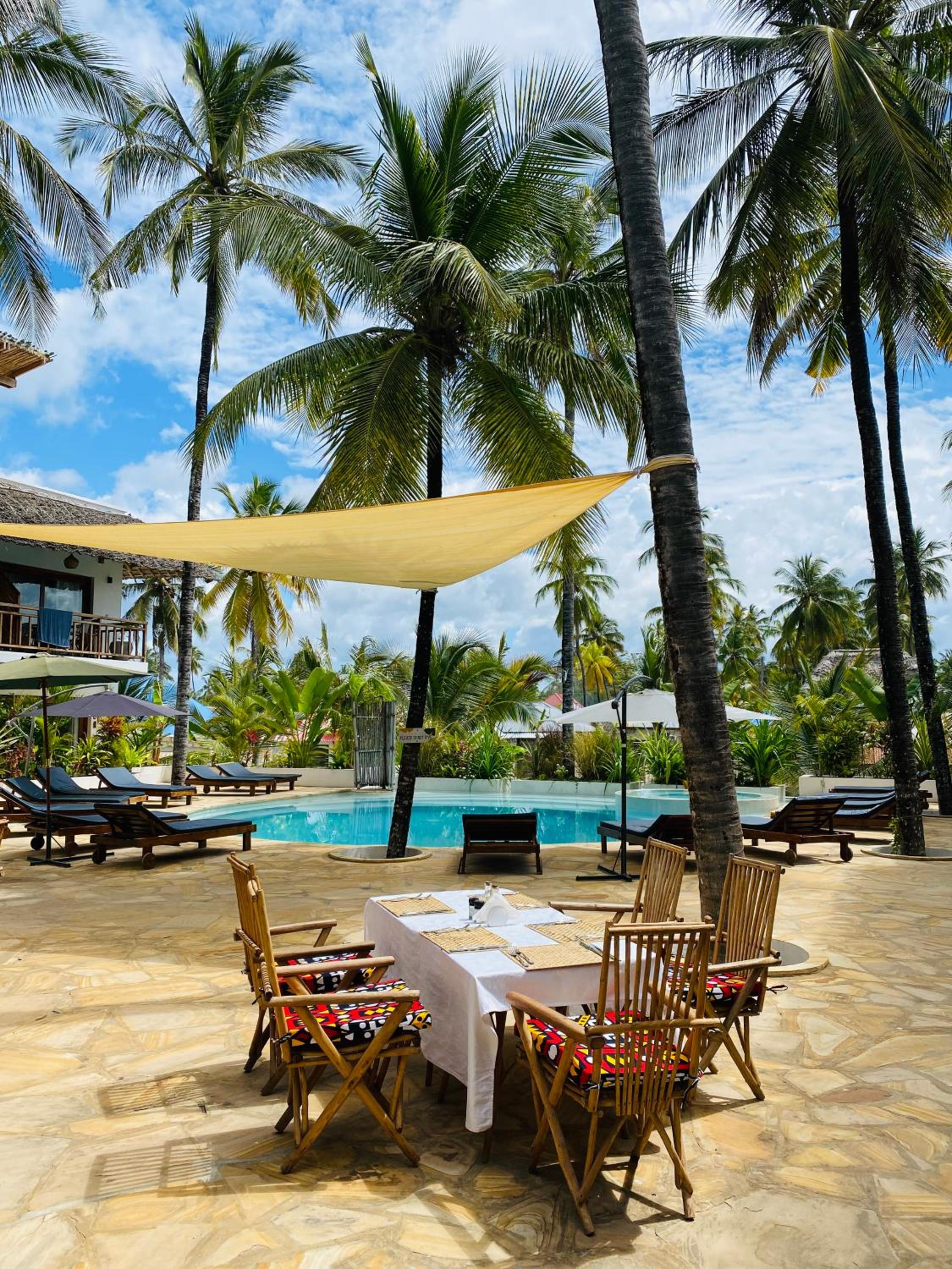Die Unterkunft ist zentral in Paje gelegen und in 5min ist man am Strand. Die Zimmer sind sehr sauber, gross und stilvoll eingerichtet. Es hat einen schönen Pool welcher täglich gereinigt wird und gleich daneben kann man draussen unter Palmen frühstücken. Das Frühstück ist gut und es gibt frische Früchte dazu. Das Personal ist sehr freundlich und hilfsbereit