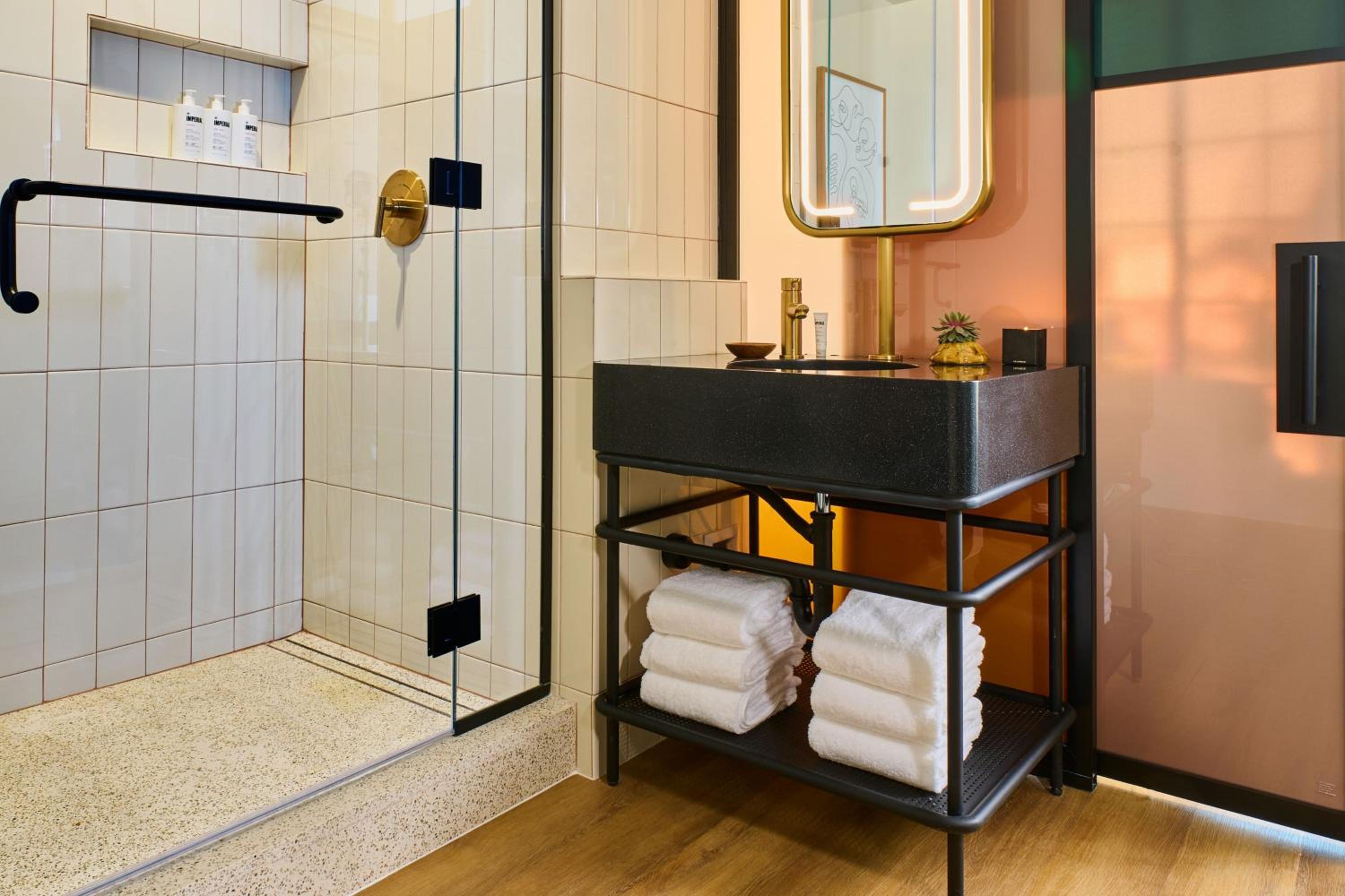 Smaller yet designed with a conscience, great people, great menu, fun bars, chill and quaint yet big on everything available including great roof top deck. I love a view, my bedroom had a view of Downtown LA, and the rooftop always an amazing sunset.