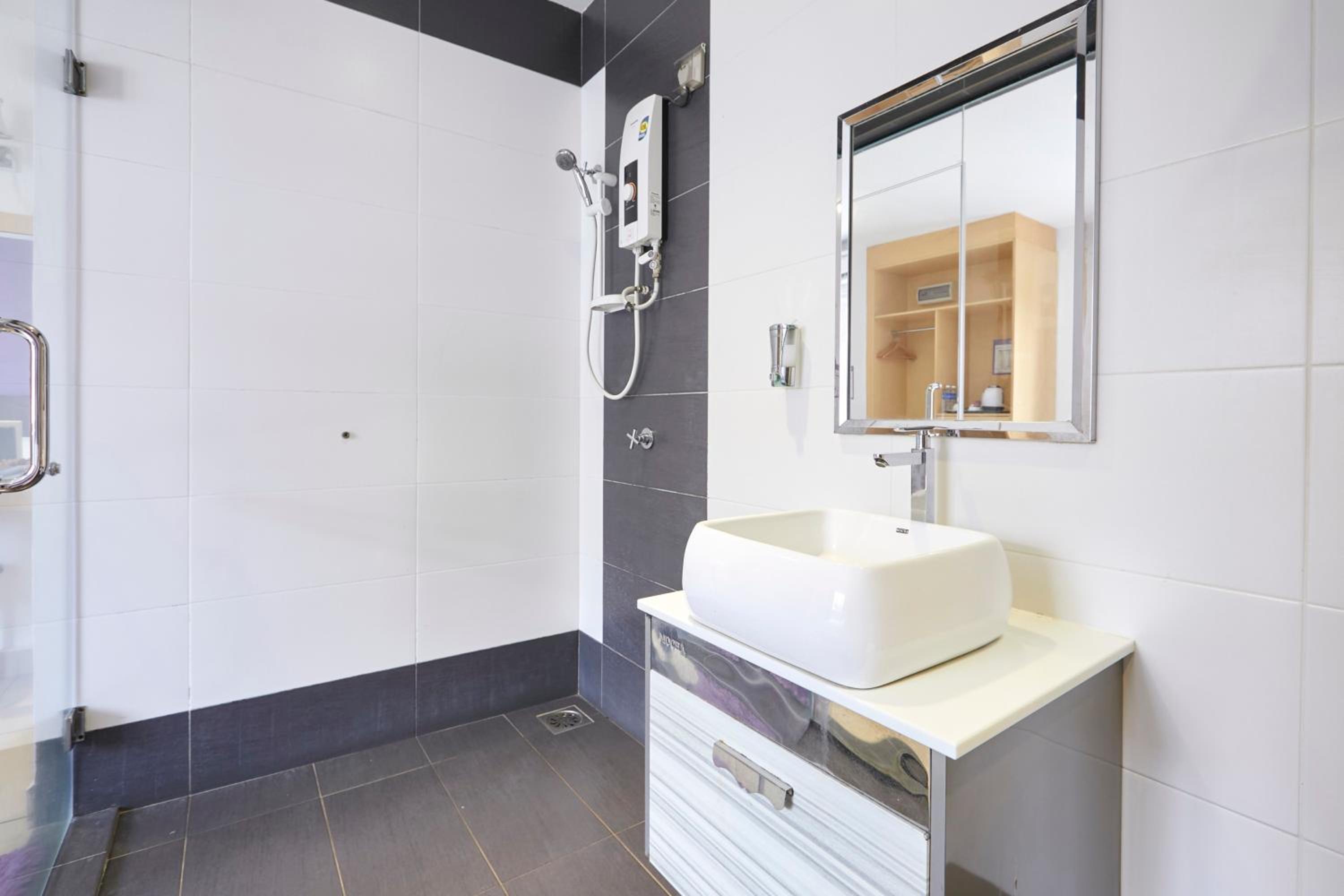 The location is a bit far away from town centre. There is no Grab service in the area. Need to walk quite a distance to buy things and eat meal.