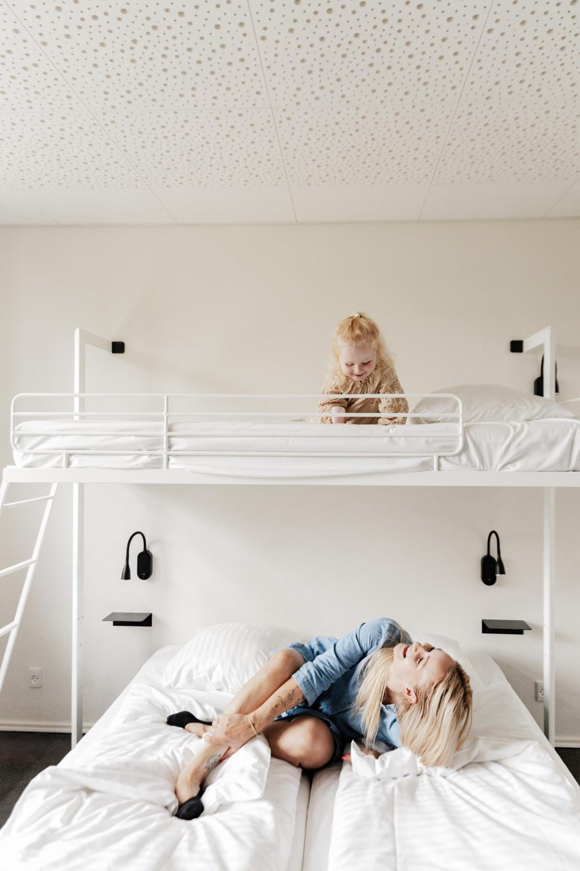 Children up to and including 2 years old stay for DKK 100 per person per stay when using an available cot.