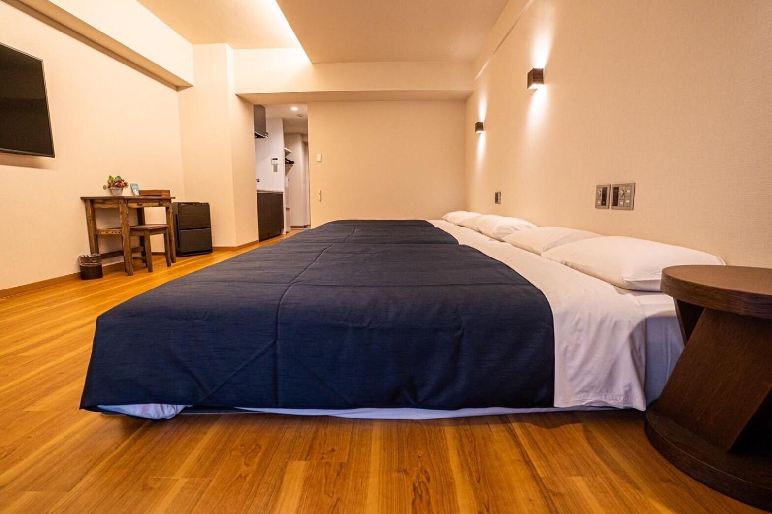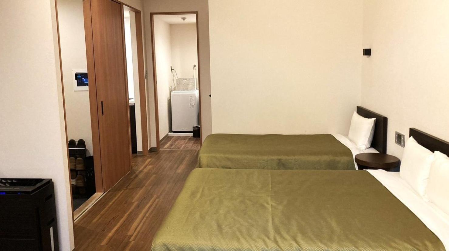 房間很大,可以打開三個28吋行李箱,廚房設備與洗衣設備及備品充足,床及枕頭都很舒服,冷氣很冷。附近有烏龍及拉麵、全家便利商站,走路5分鐘有一間小超市。