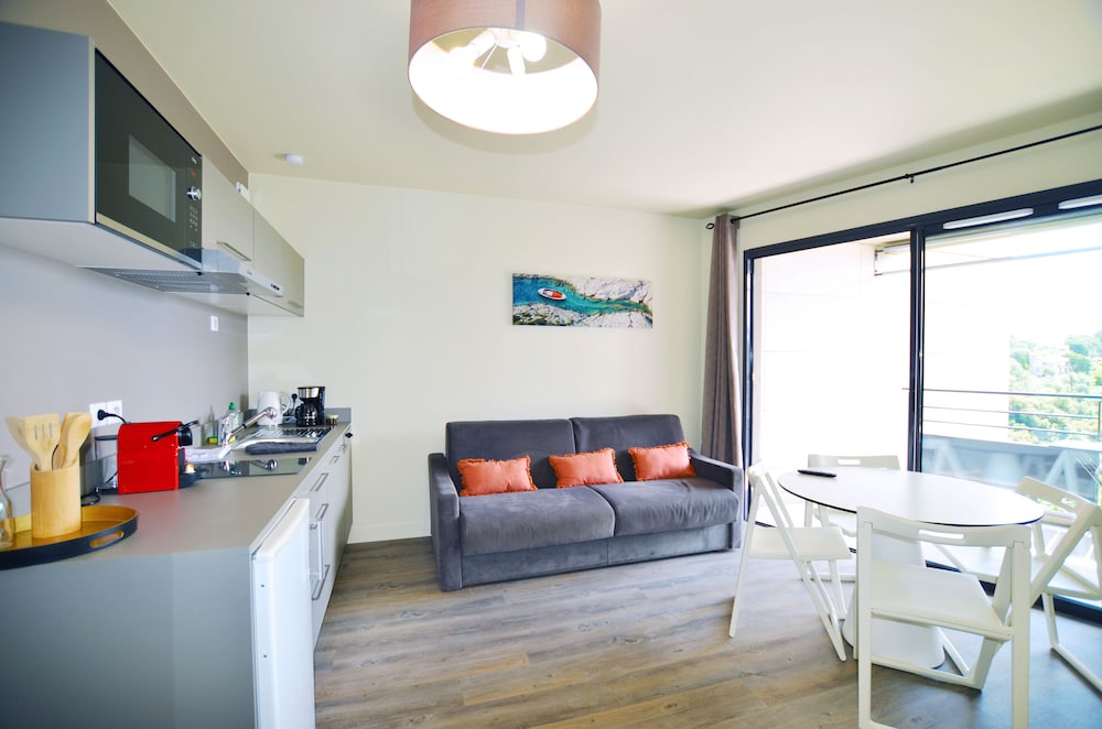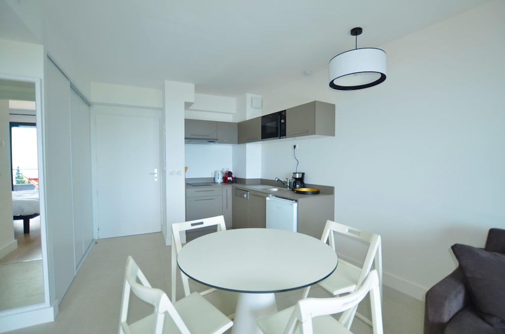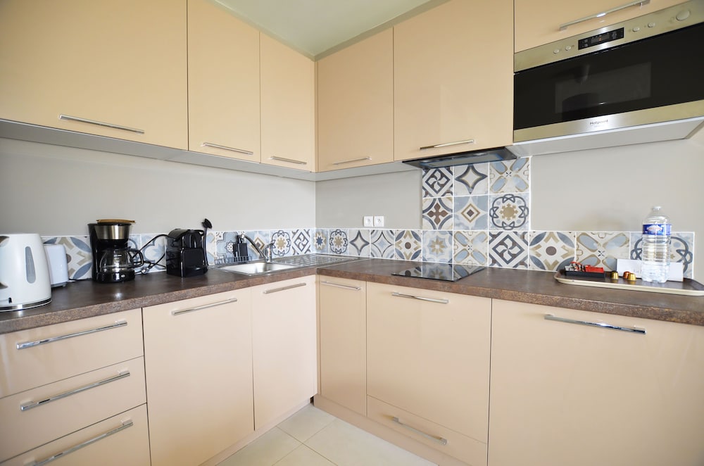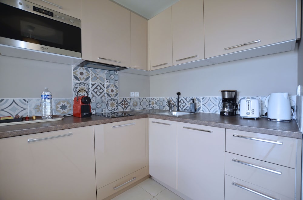 We had a one night stopover here on a much longer trip. Proximity to Eze was great—just around the corner from the base of the village—and the idea of having an apartment with space and a terrace and kitchen was nice but there was a lot to be desired… first, we waited about 15 after arrival for someone to show up at the front desk to check us in, and by then there was a queue of 4 parties waiting with other questions. The room itself was clean on first inspection but then we discovered later it was dusty and needed a better clean. The bathroom smelled like sewage and I believe the culprit was the shower drain. Upon actually showering. We discovered that the overhead rain shower did not work or have hot water, but the handheld shower head did so we tried to use that, but resulted in spraying water everywhere as most of France has open showers with no doors. The kitchen is apparently not included in the room cleaning so you are responsible for cleaning the kitchen and taking out the garbage yourself. I’ve experienced this in airbnbs but never an actual hotel… The breakfast was minimal but not bad. Overall we tolerated it for the one night but I wouldn’t recommend.