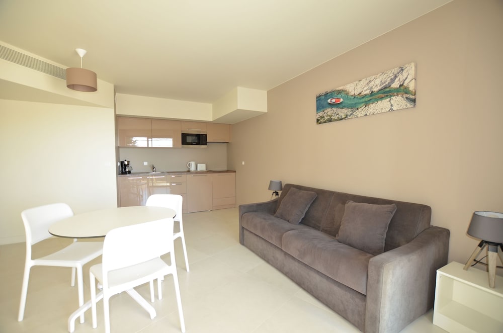 Enkelt lejlighedshotel med begrænset service og små lejligheder. The-køkkenet er rimeligt veludstyret så man kan lave simple måltider. Kig til havet, ikke panorama. Ligger ved befærdet vej så påregn støj. Lidt besværligt at komme ned til stranden i Eze (bus anbefales). P-kælder er et stort plus.