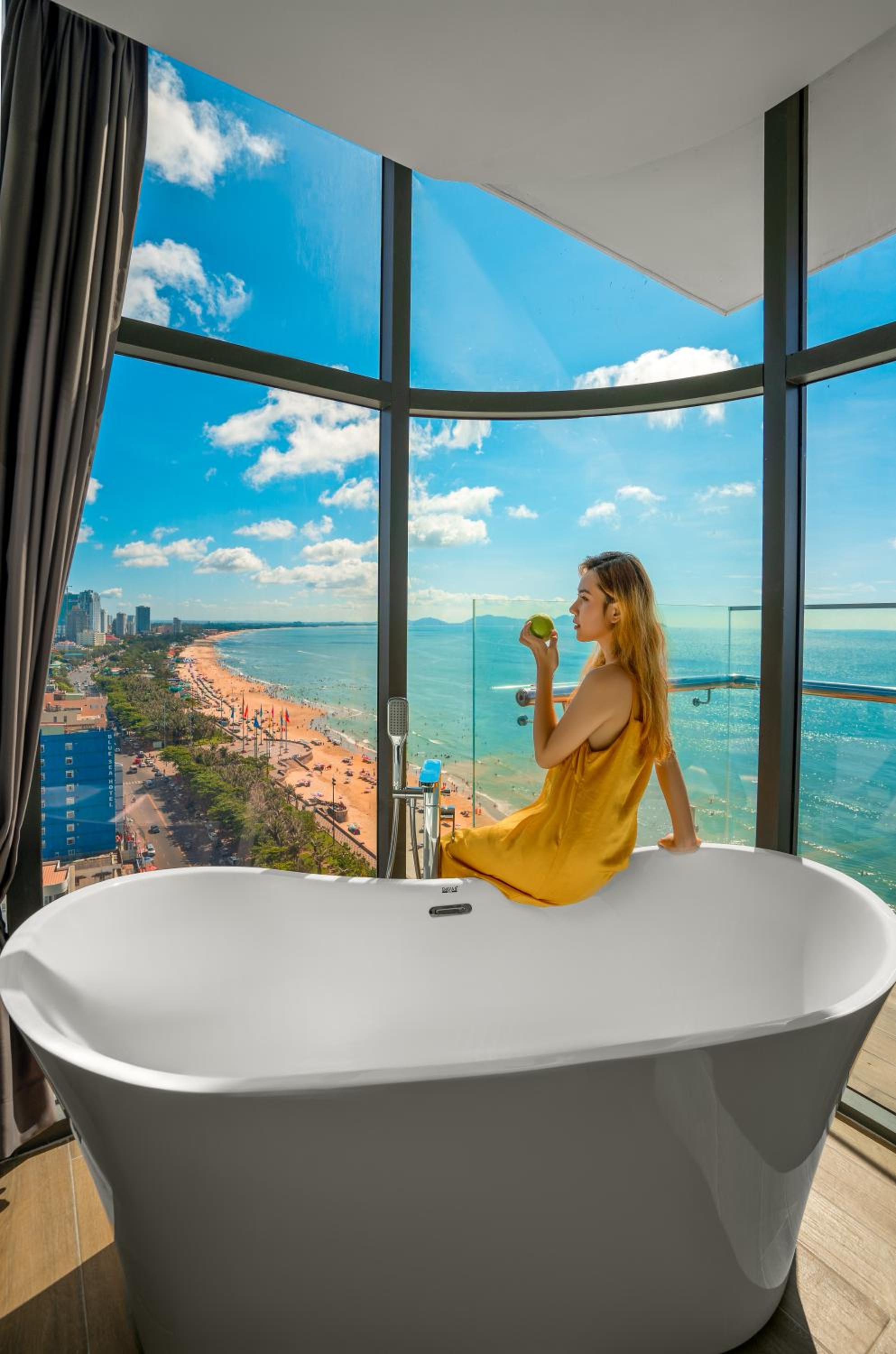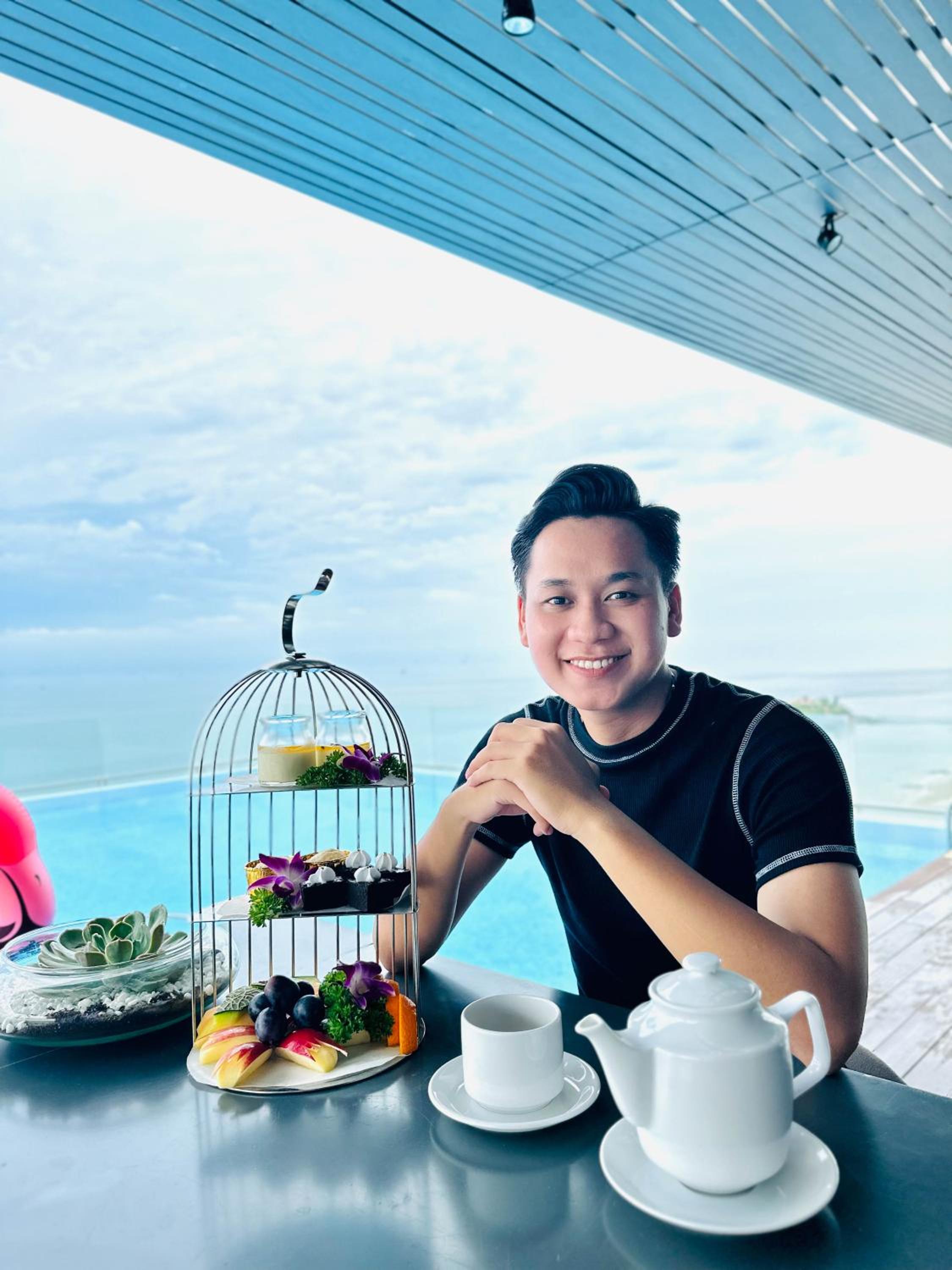 I booked a room with OceanFront view on their 15th floor. Initially they gave me a 12th floor room but I request for the highest. The reception staffs tried their best to give to guest needs, thumbs up. Location is so good right in front of the Bai Sau beach. Felt like as if you are holidaying in Gold Coast Australia. Very windy and super unobstructed view of the ocean. Buffet breakfast spread comes with many choices of food. Even one of the day I tried their BBQ seafood dinner buffet at the beach rooftop floor is amazing, food spread also indeed top notch standard. Their hotel Director Nguyen Van Cuong gave us a wedding anniversary cake plus welcome card, which presented a very heartwarming touch to us coming with my family of four with two kids along for our March school holiday trip.