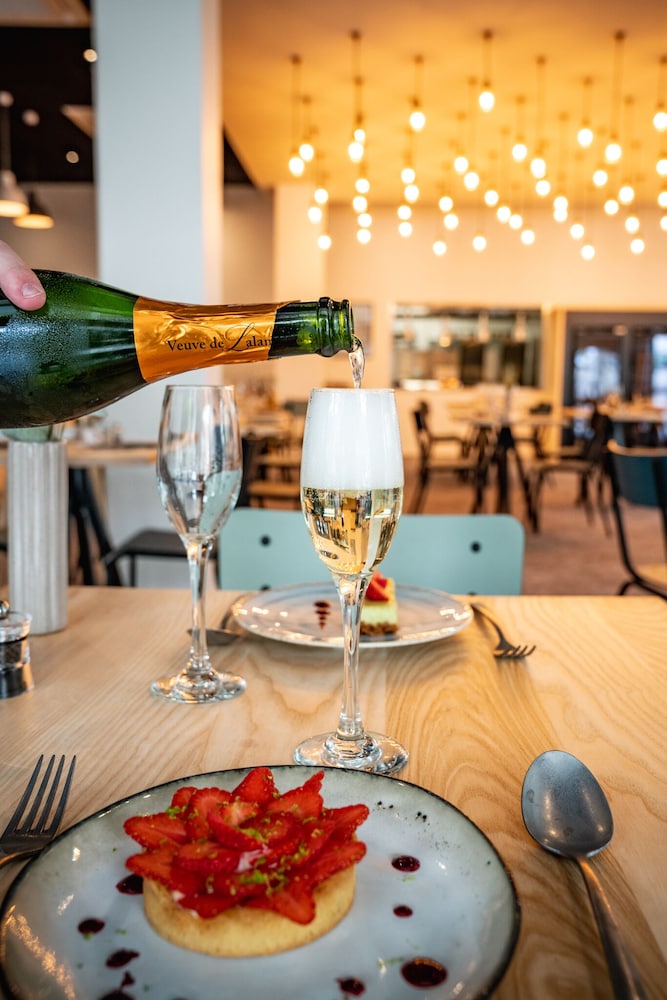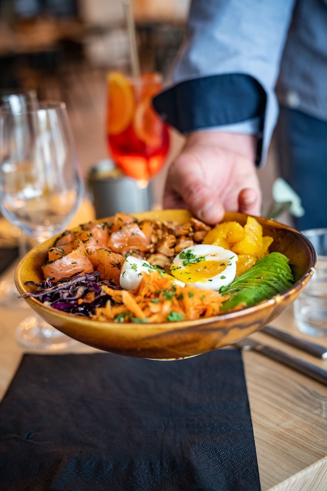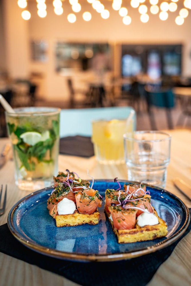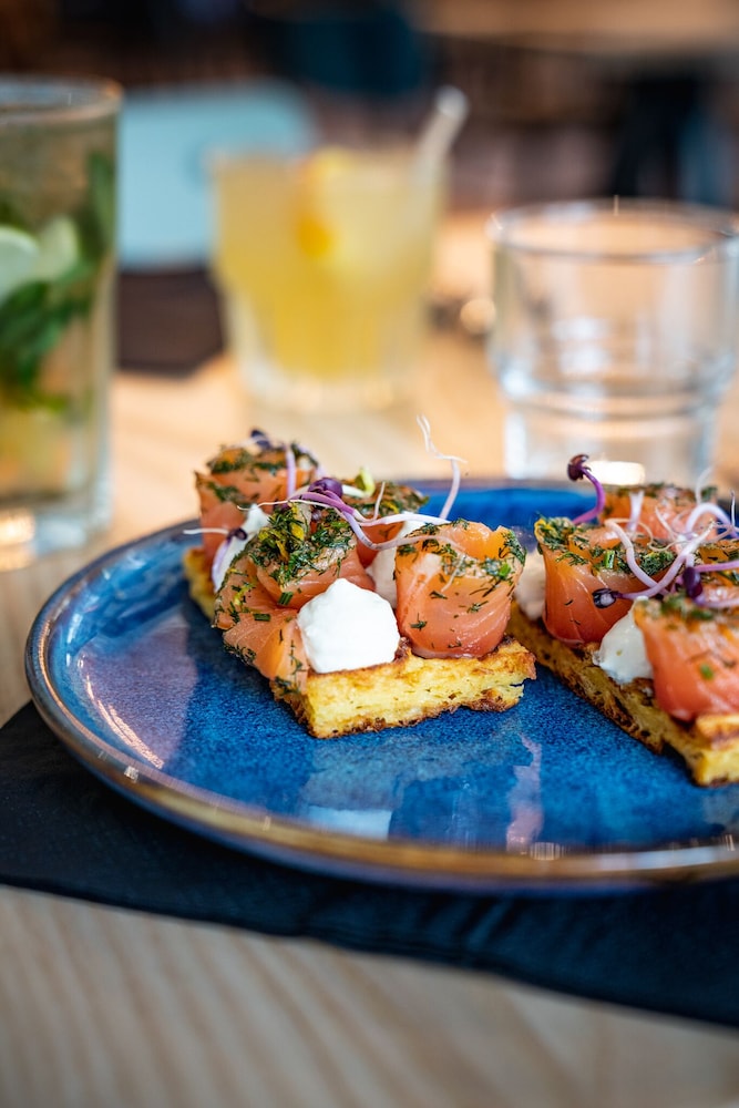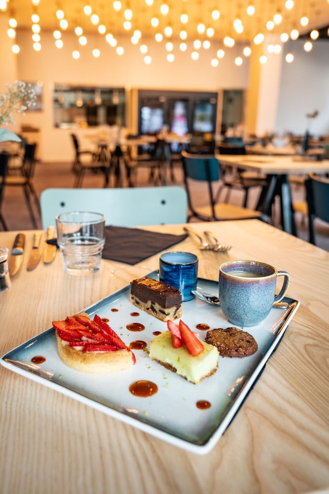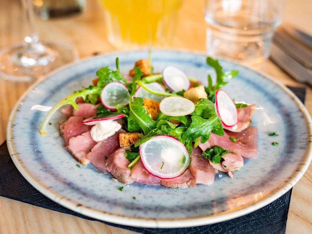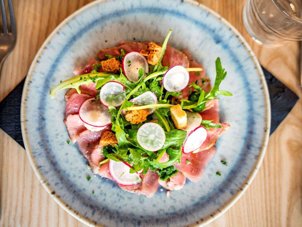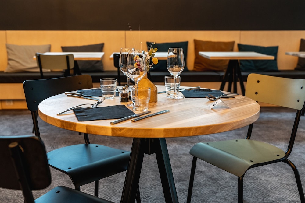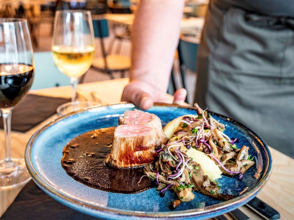 Good location. Food was nice. Breakfast was also good but the self service area was too small. This resulted in a lot of congestion. The coffee and drinks machines should have been in a different location. Not enough staff o breakfast- one person topping up the breakfast items, clearing up and registering guests for breakfast. Garage for parking was accessed through a hotel door. It wasn’t clear how to get access when it was closed. Rooms were quiet, simple and functional.