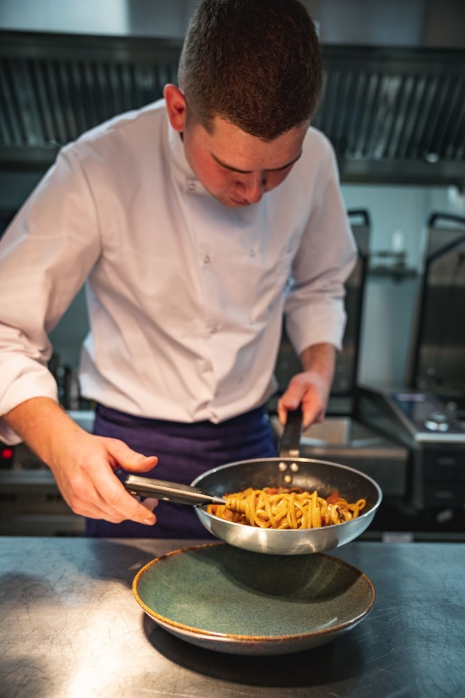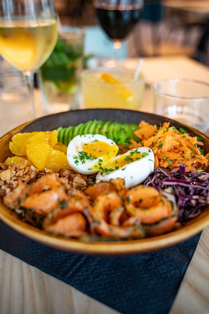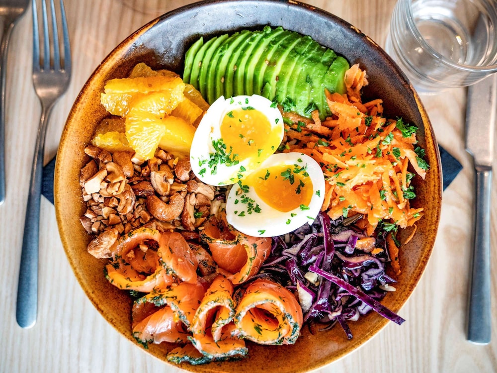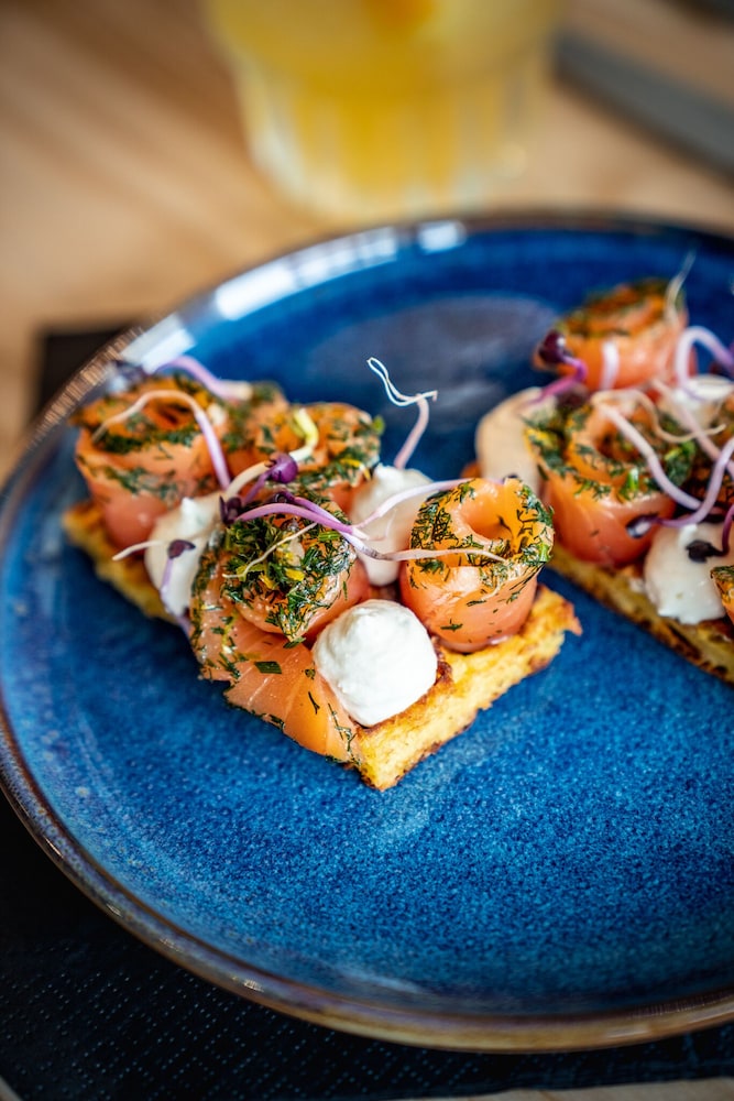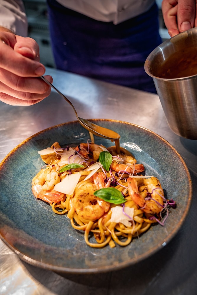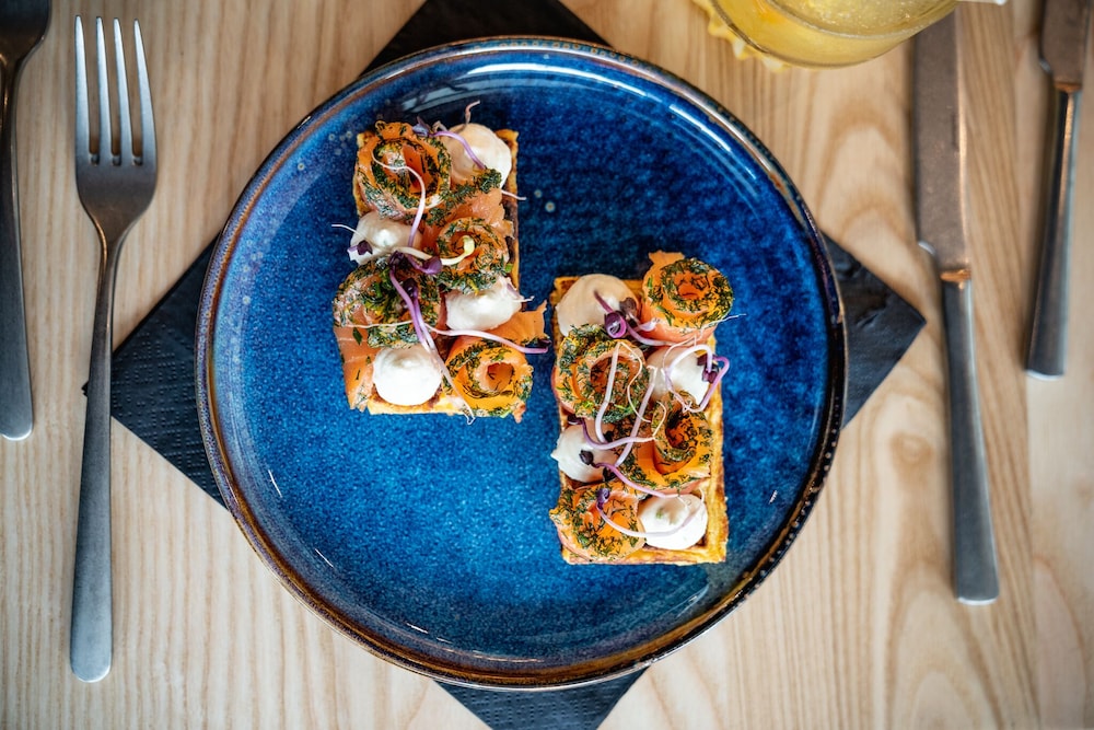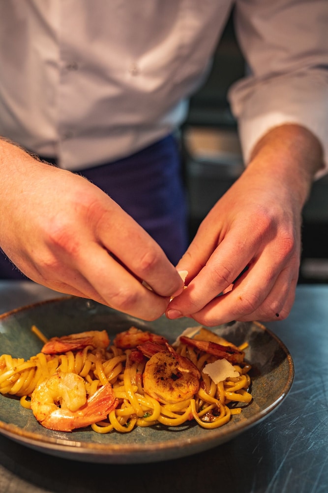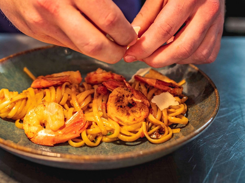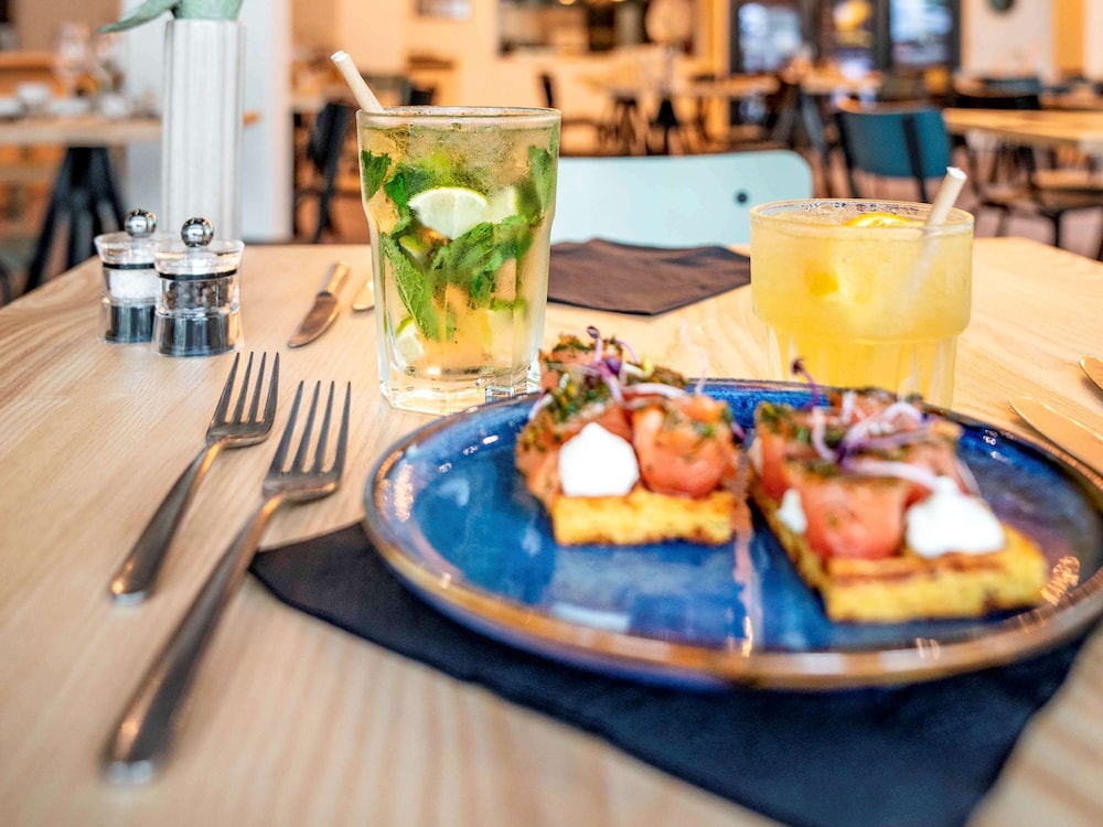 Good location. Food was nice. Breakfast was also good but the self service area was too small. This resulted in a lot of congestion. The coffee and drinks machines should have been in a different location. Not enough staff o breakfast- one person topping up the breakfast items, clearing up and registering guests for breakfast. Garage for parking was accessed through a hotel door. It wasn’t clear how to get access when it was closed. Rooms were quiet, simple and functional.