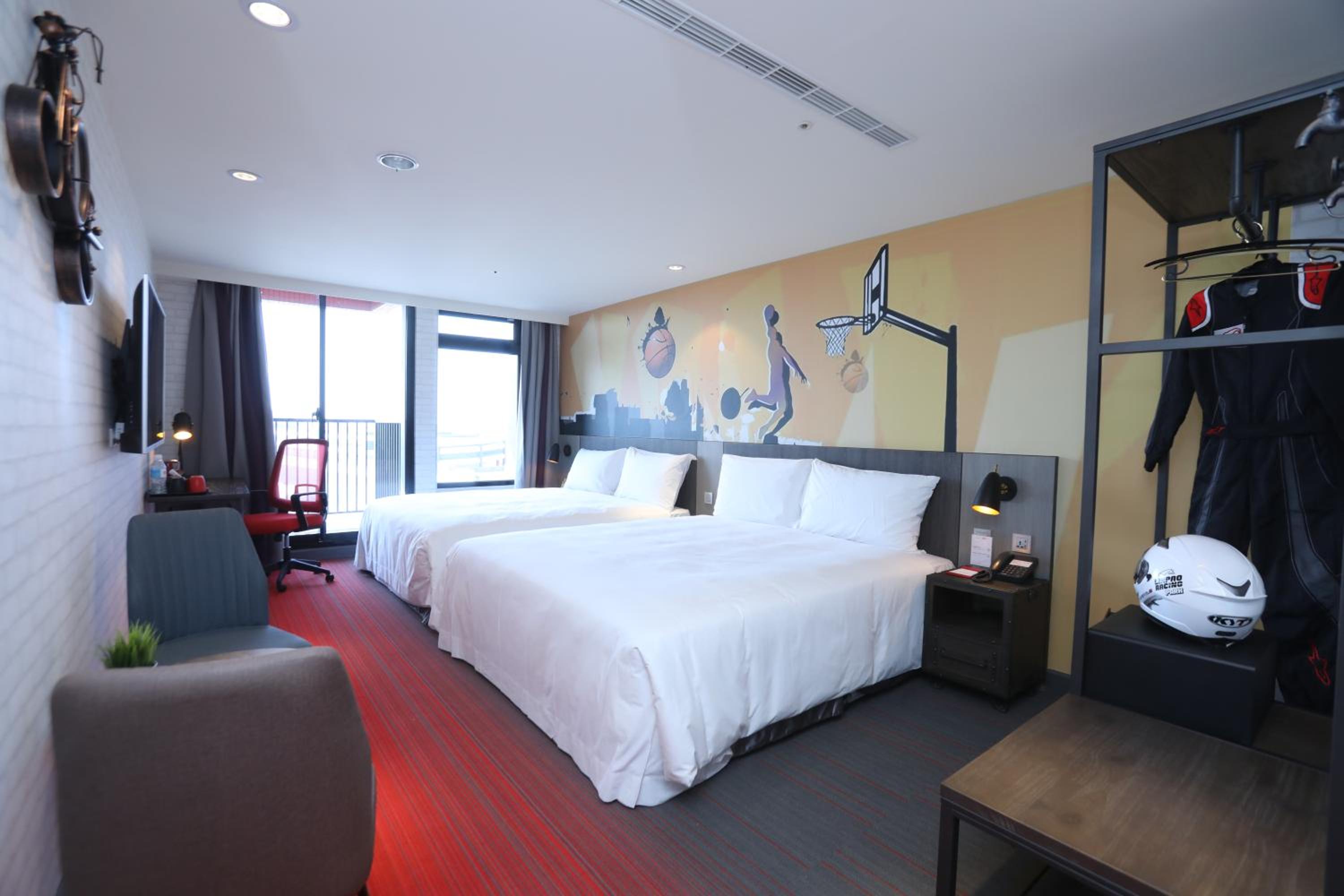 房間設計是工業風,非常簡潔。飯店對面是賽車場,隔天早上有機會觀看賽車,蠻有趣的。