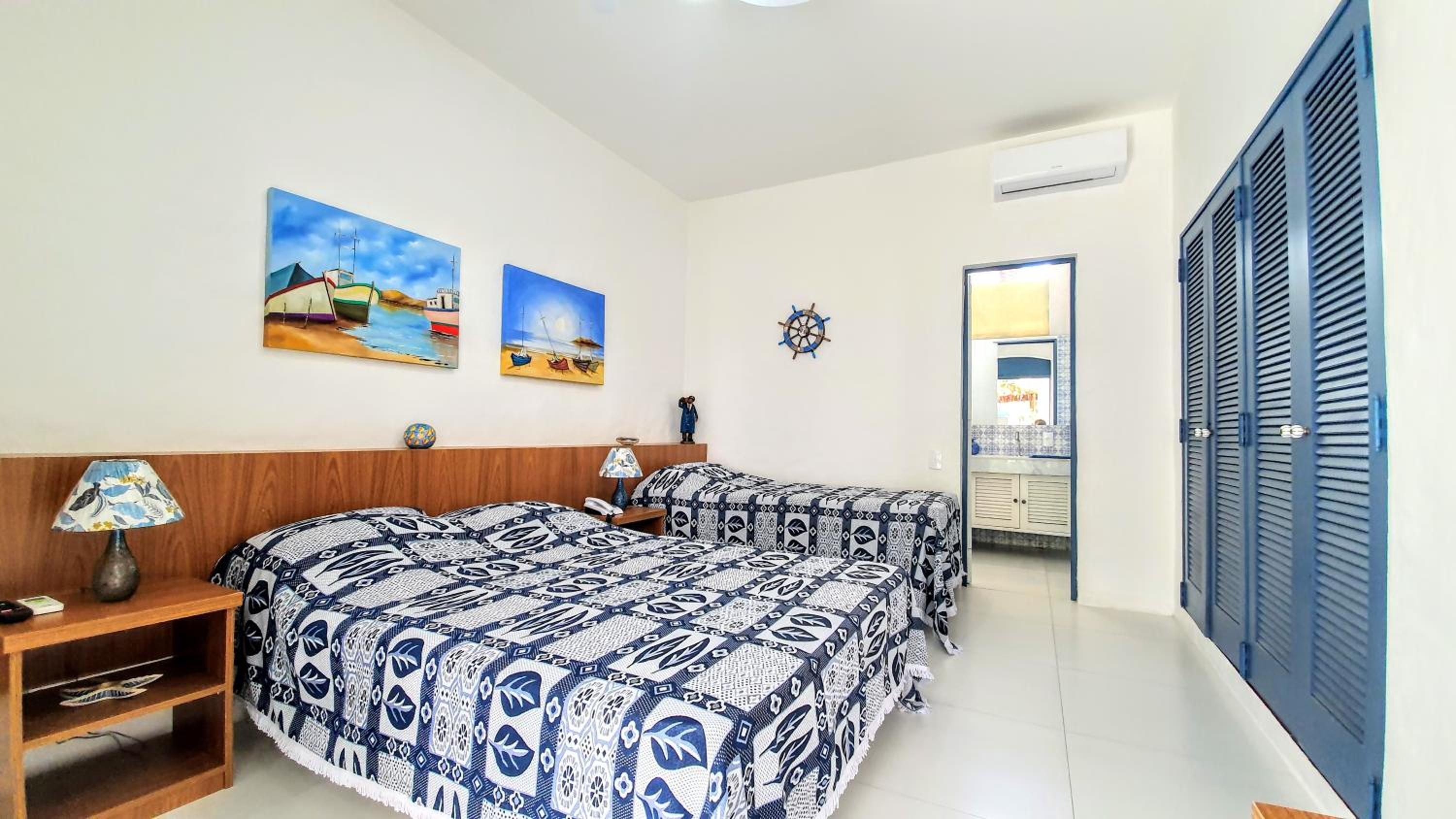 Faltou porta roupas molhadas nos quartos.