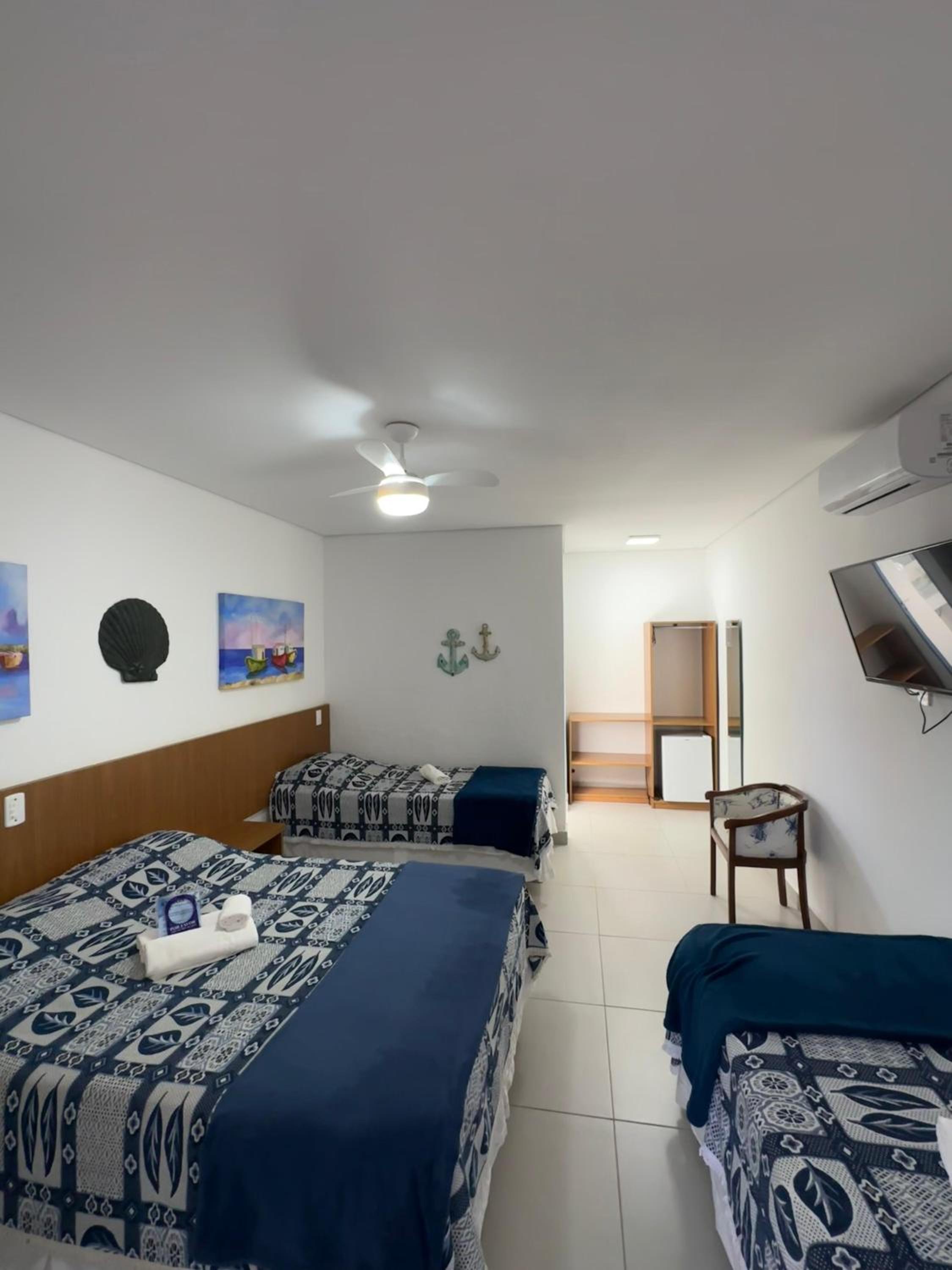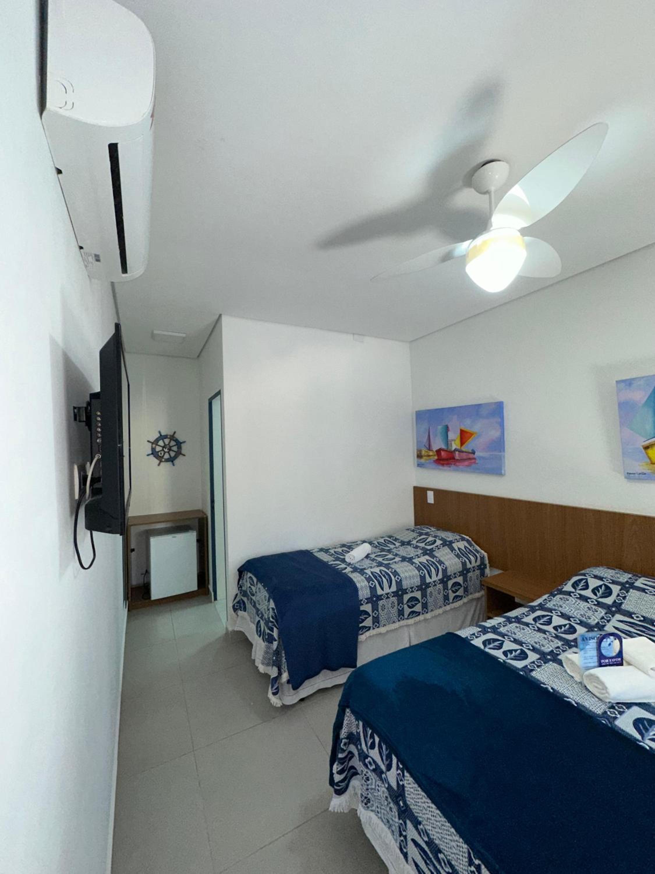 Os quartos são pequenos e quando manifestamos nossa insatisfação, fomos alocados para um quarto um pouco maior, porém o banheiro e o box do chuveiro eram exíguos!