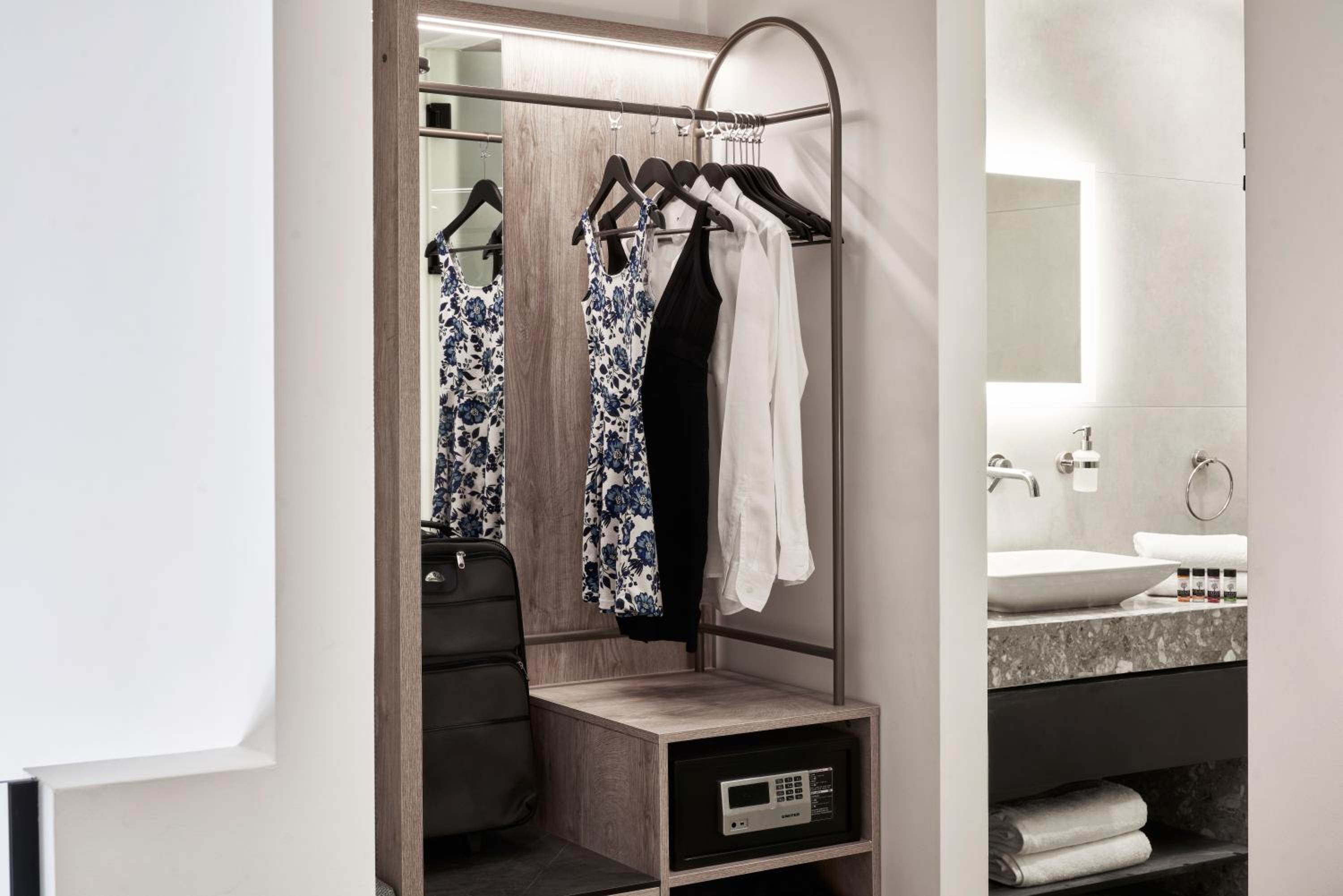Each room is equipped with a desk, flat-screen TV, private bathroom, and safety deposit box. Some rooms feature terraces with city views, ensuring a pleasant stay for every guest.