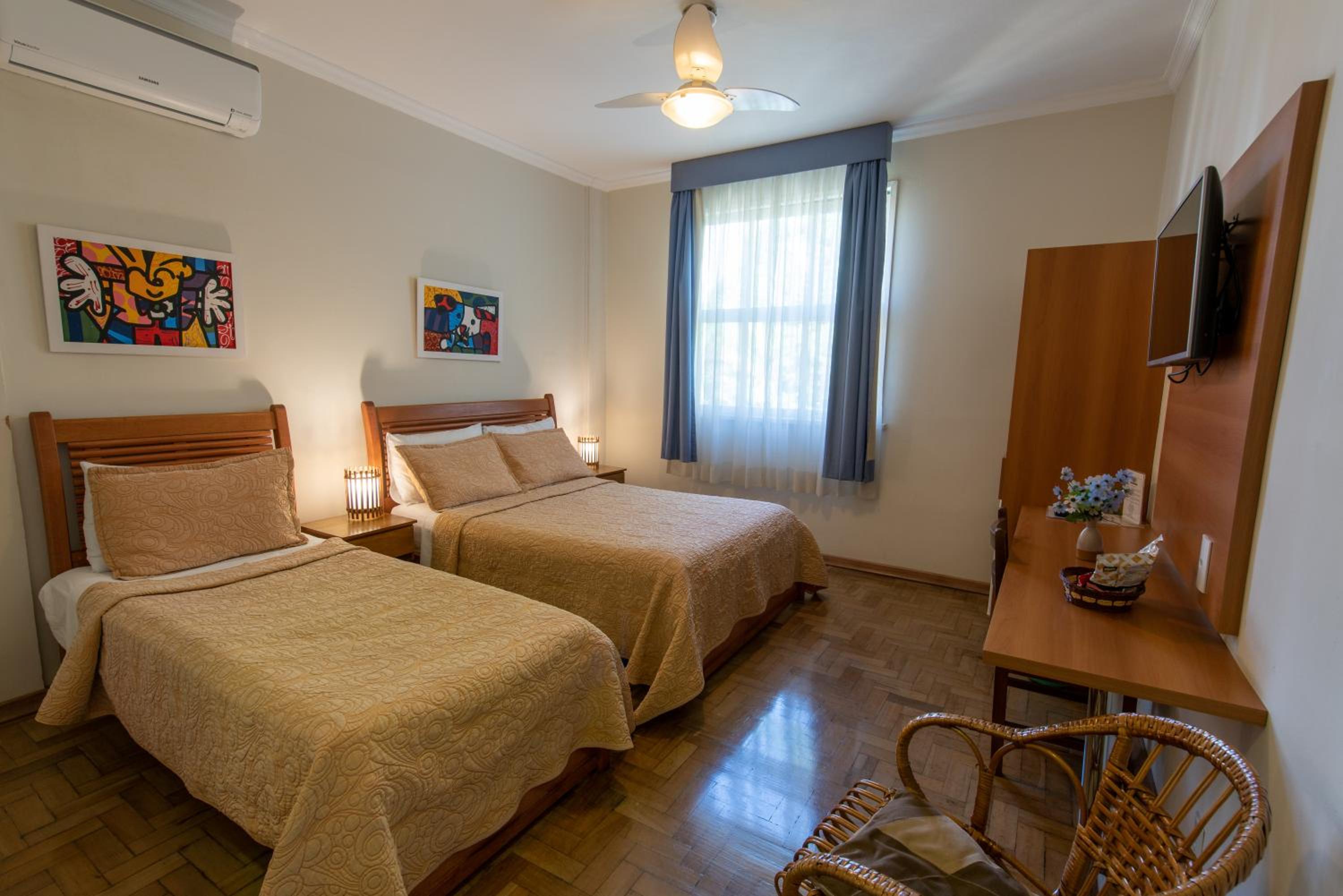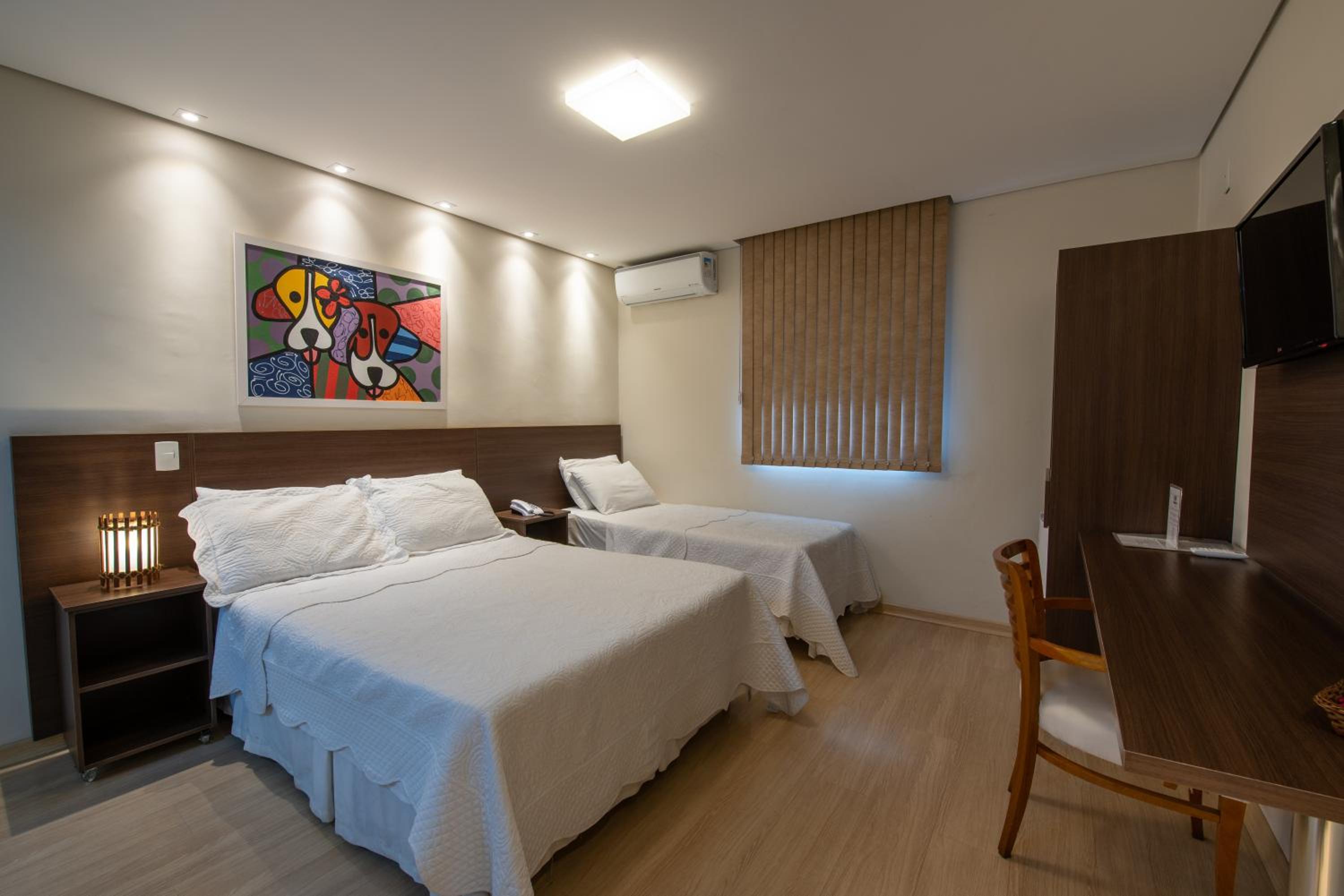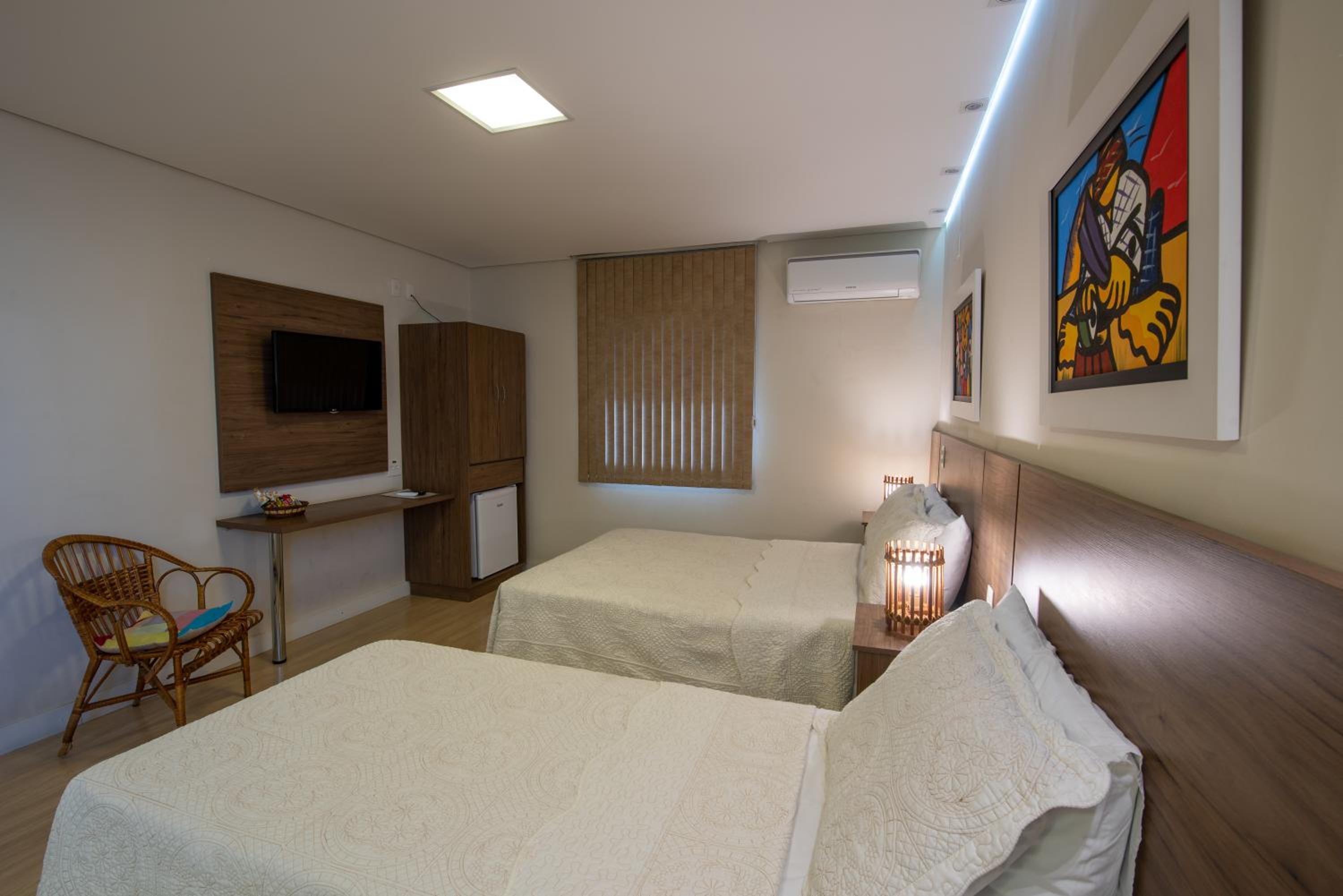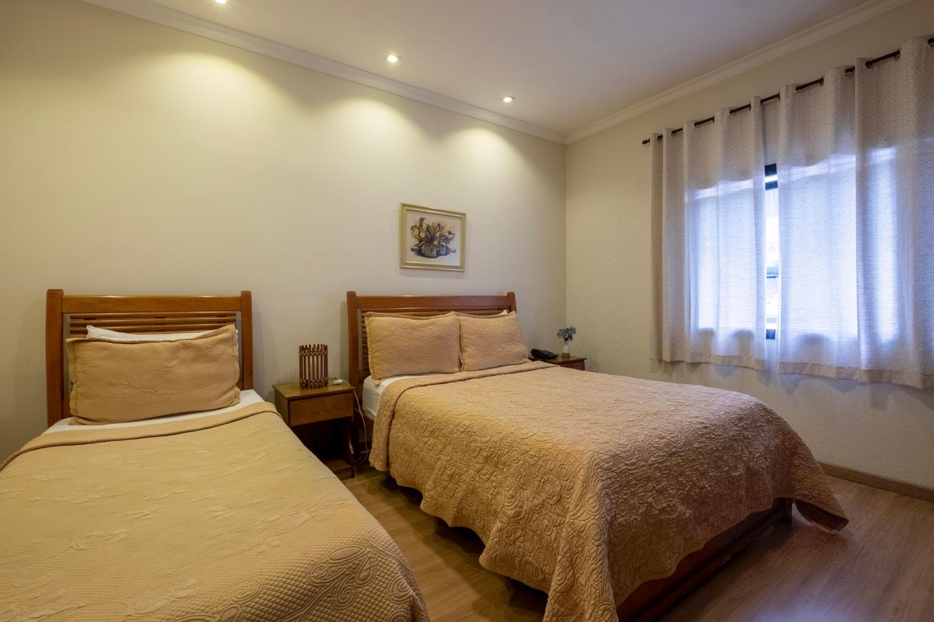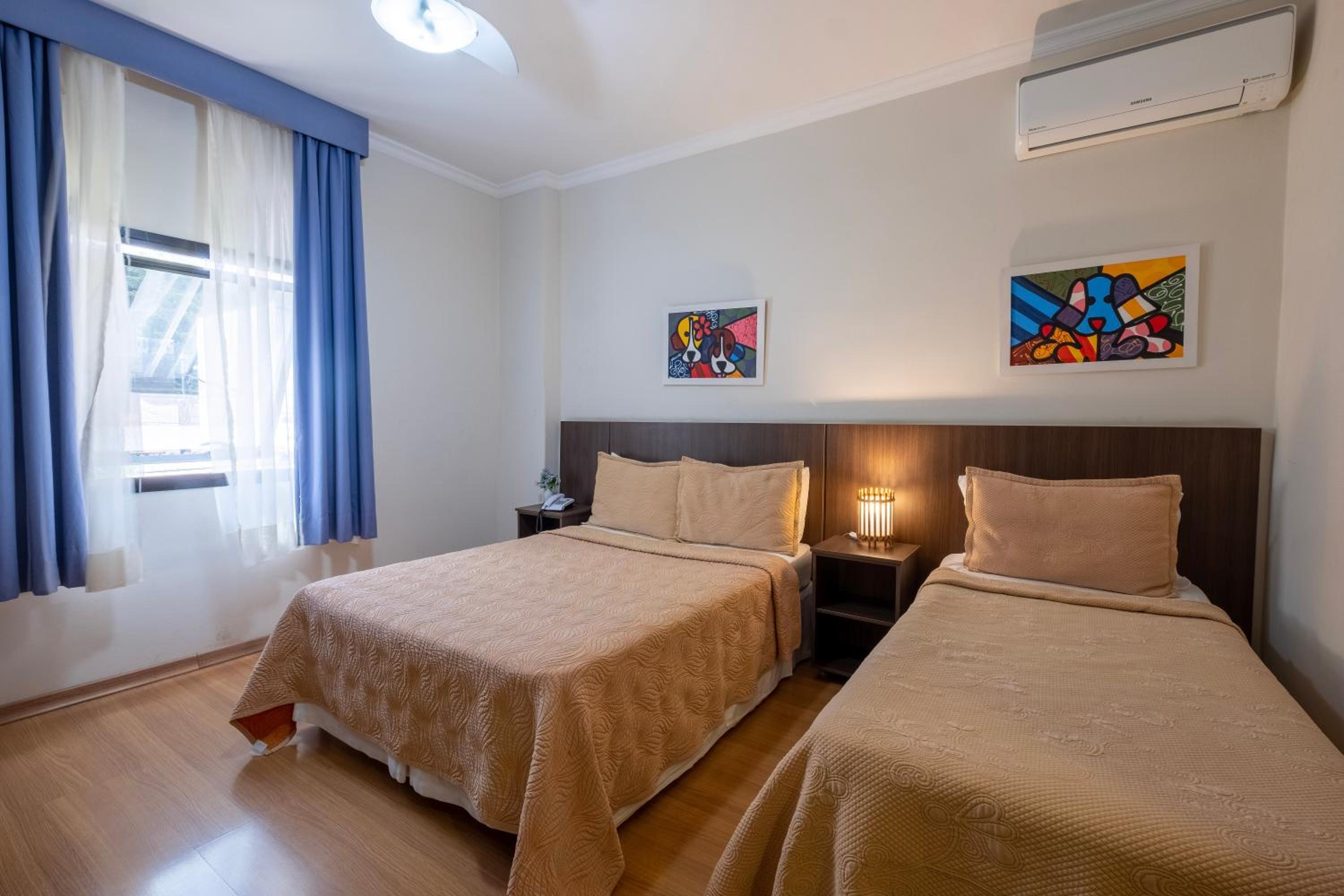 Algumas coisas precisam de melhorias , pelo. menos no apartamento que ficamos , tem 1 cama de casal e 1 de solteiro, e apenas 1 cadeira , a janela não tinha um blecaute, logo quando o dia clareava , clareava todo o quarto, no banheiro não existia lugares para pendurar as toalhas após o uso , a luz do quarto fica longe da cabeceira e quando se apaga a luz , apagam as duas luzes do quarto.