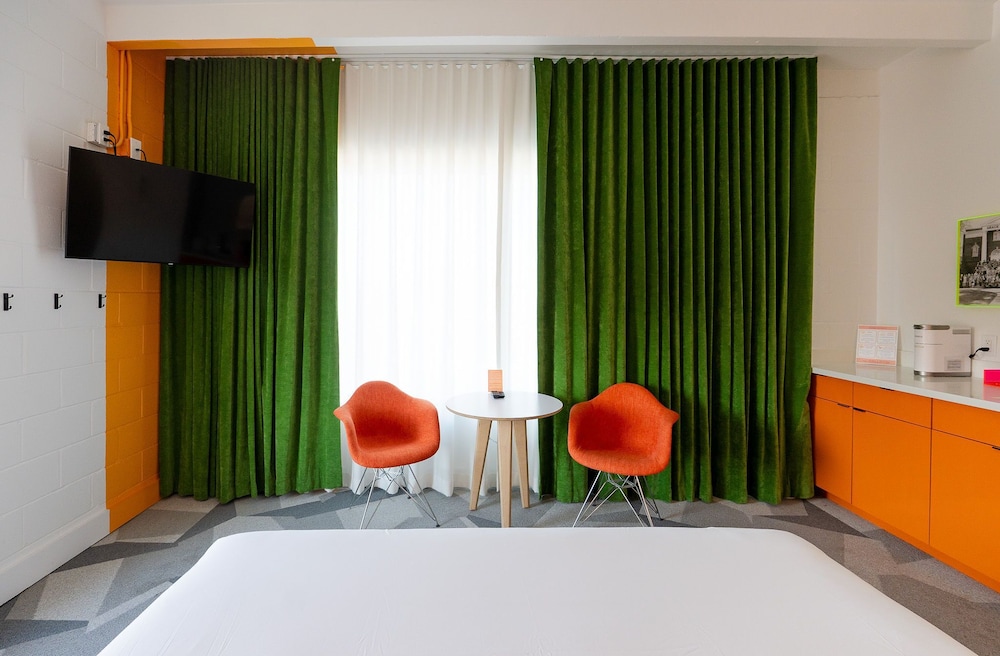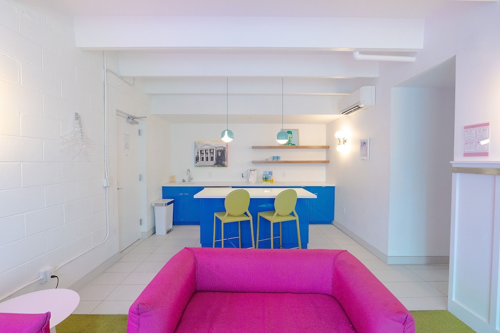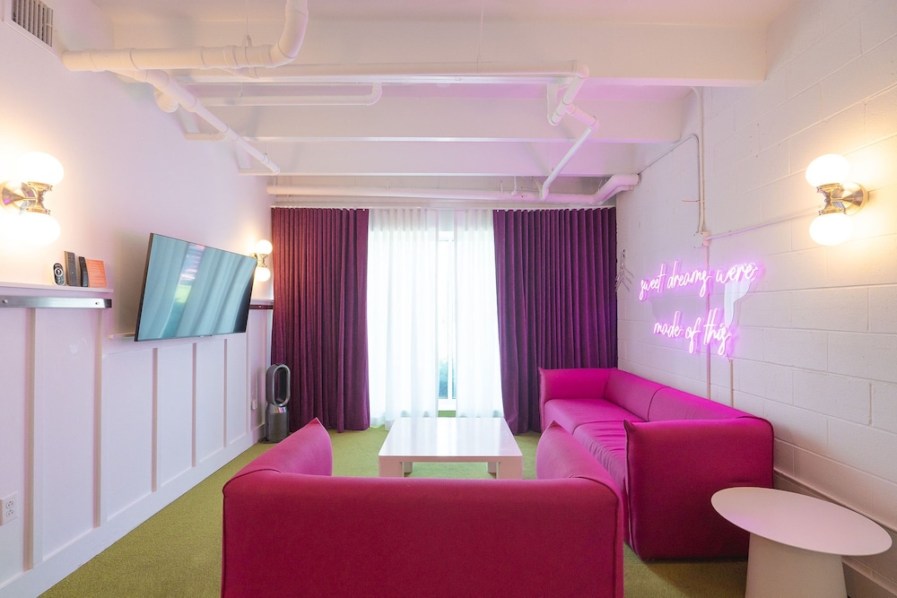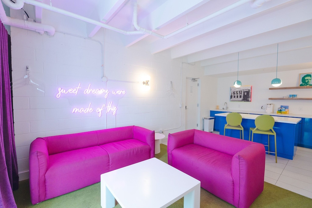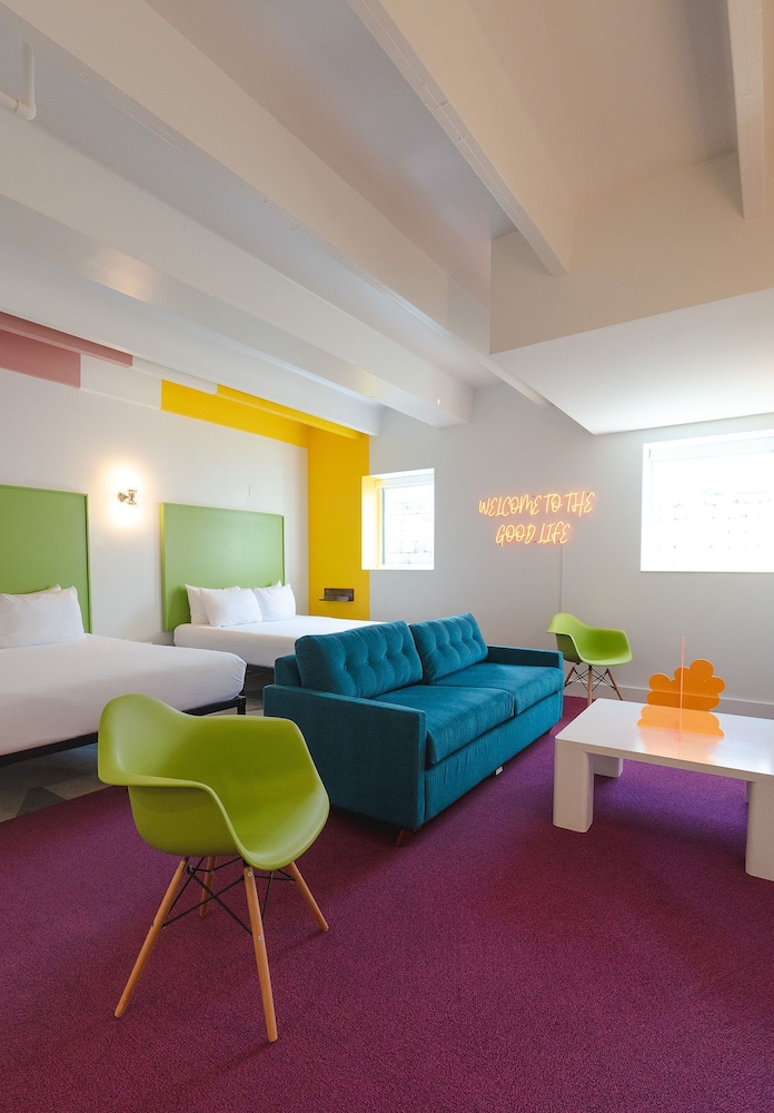 This property looks pretty cool online, and we stayed here because they contribute to the homeless, a cause I’m passionate about. However the cleanliness needs a huge step up because the carpets are so filthy and the walls are dingy with either dirt spots or paint chips. Just needs touching up to reach its full potential. Everything else was good. Location is amazing all my Lyfts were less than 10 bucks.