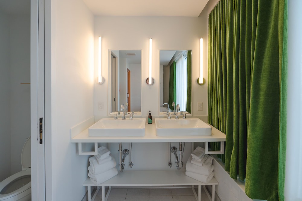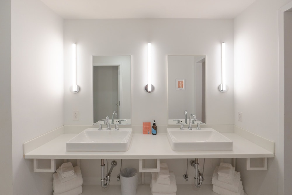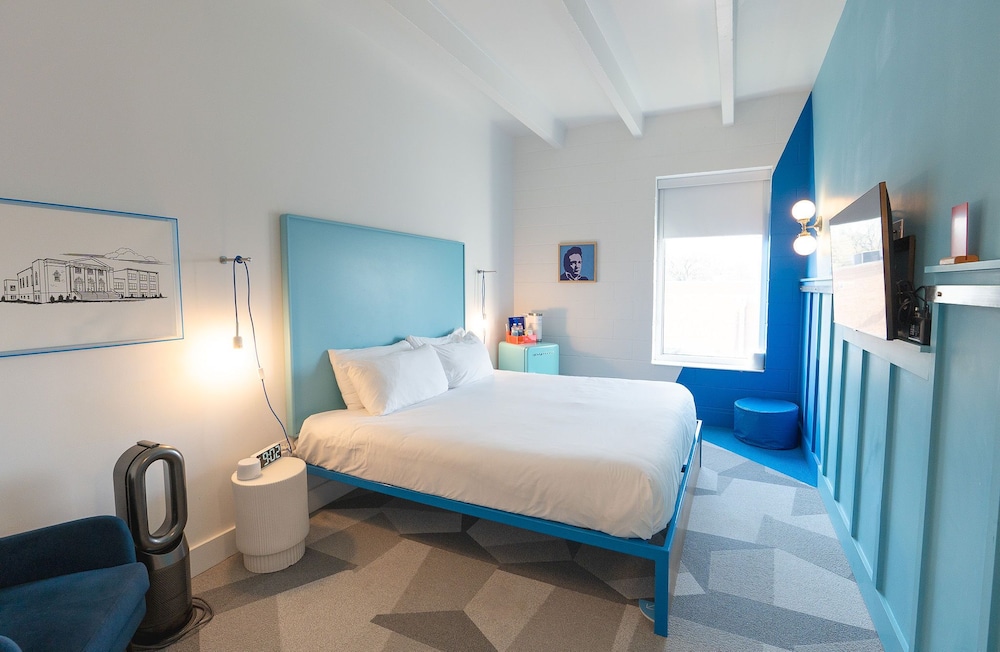 This is a self-service qwerky (in a good way) hotel! So cute!! Away from the hustle/bustle of Nashville. The Photo Booth and the Luggage Lift are neat!! The free bottle of wine and the snack tray with bottle koozies was a bonus!! Double vanities in the bathroom was great for a granddaughter/grandmother trip! The history of this renovated hotel is very interesting! Great shower, plenty of towels, a sofa that was extremely comfortable!! Beds and pillows are very nice!! The only downside… not sure I would have located it without GPS.