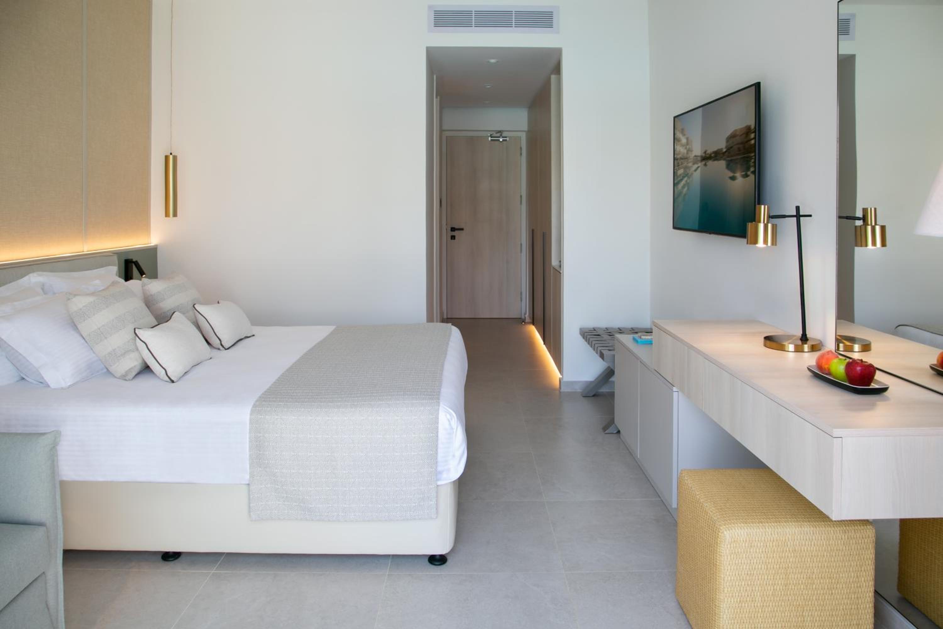 We selected a family room with a view of the sea and the pool and were accommodated in the main building. The room was not particularly spacious, and the bathroom was very small. There were three of us with a small child, and I believe this represents the maximum occupancy for this room to function with any degree of comfort. With another child, it would become genuinely cramped. The amenities functioned without issue; everything appeared quite new and caused no problems. The beds featured comfortable mattresses.