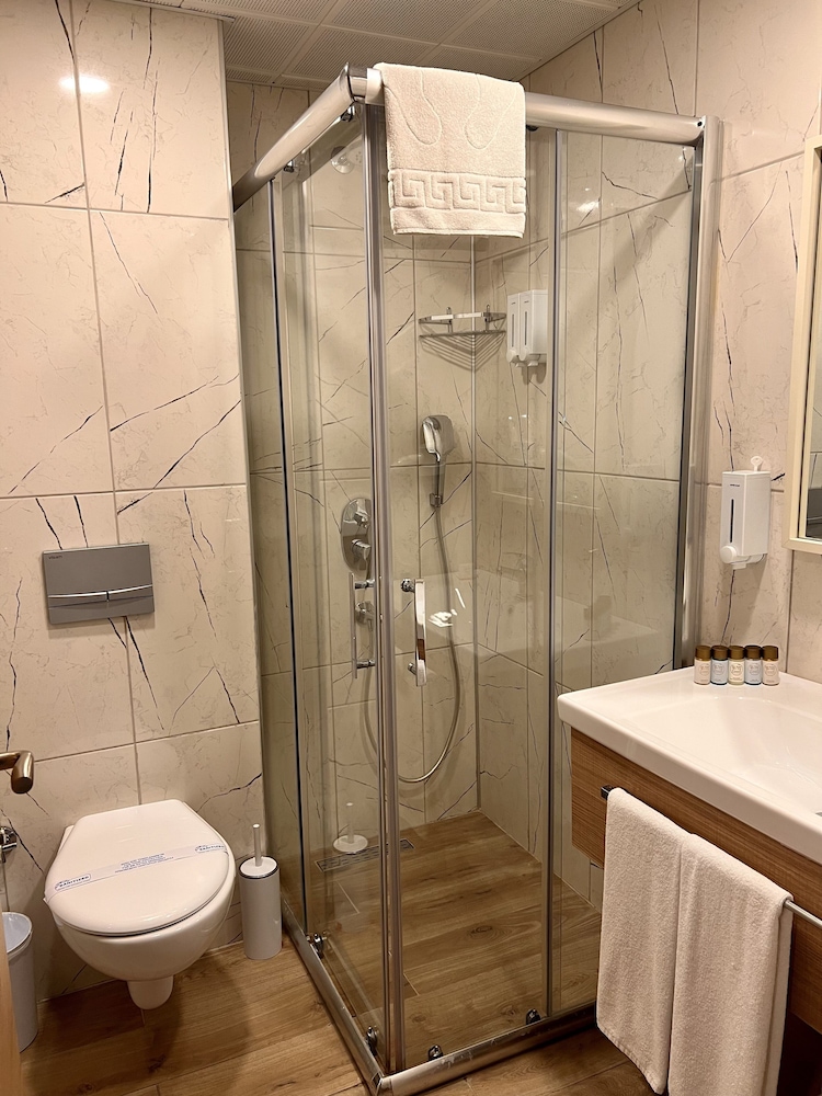 We had a special request which we texted about that from Hotels.com but they didn't do anything. I think they might forgot. Hotel was not so good tbh. They merged 2 one person bed one 2 person bed which is not too comfortable. It was always slipping while we are sleeping. Hamam was not too clean all of the water pots were full with water. But massage was OK. Hamam crew was really friendly and makes us feel comfortable. But overall this hotel is not worth of it's price. We may choose again for their location if they give a discount next time. Internet was laggy we had some problem with our online meeting and we rushed out to a cafe. TV is really old btw we cannot even use Netflix or smth. Thank you for everythin afterall