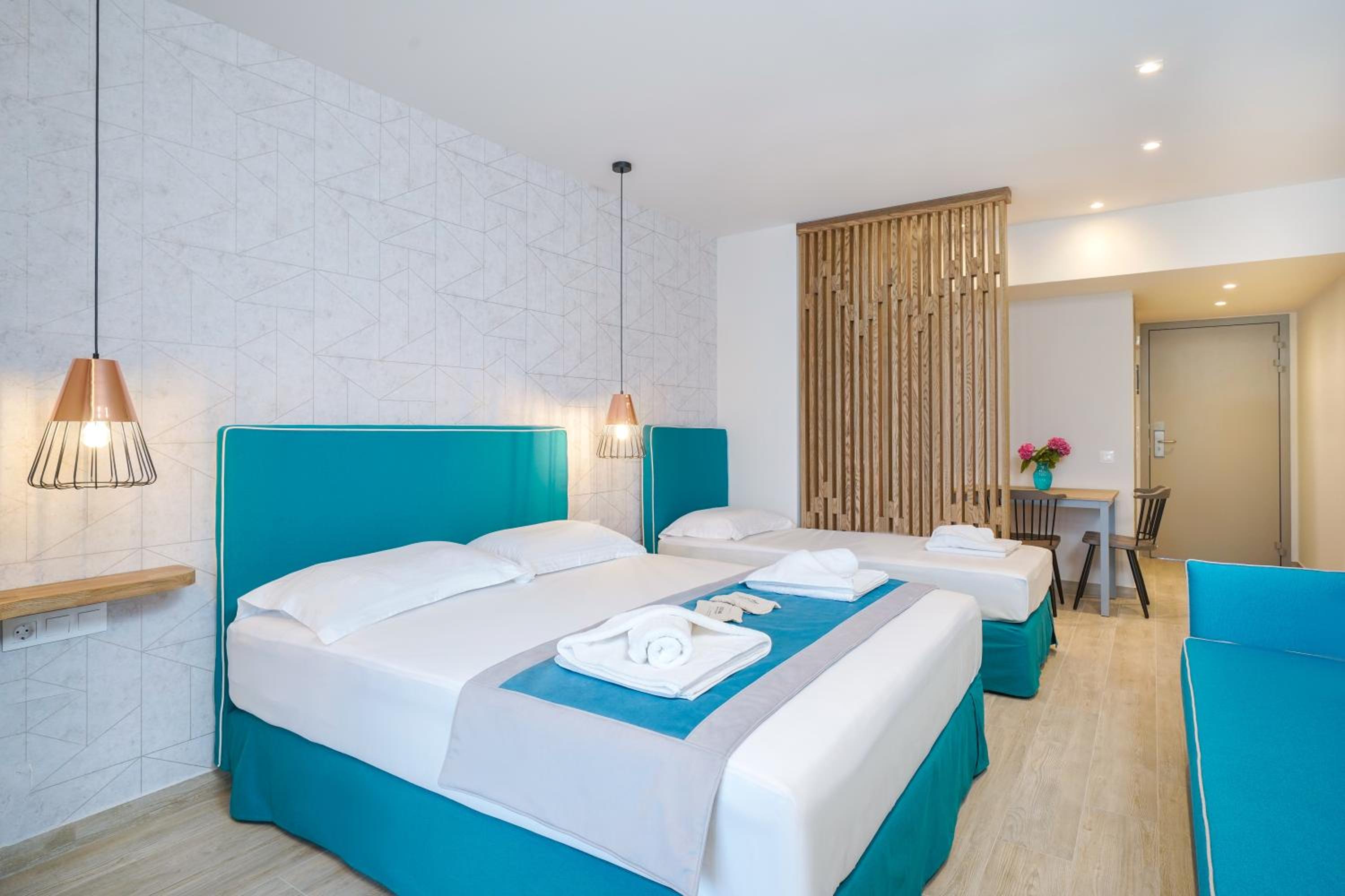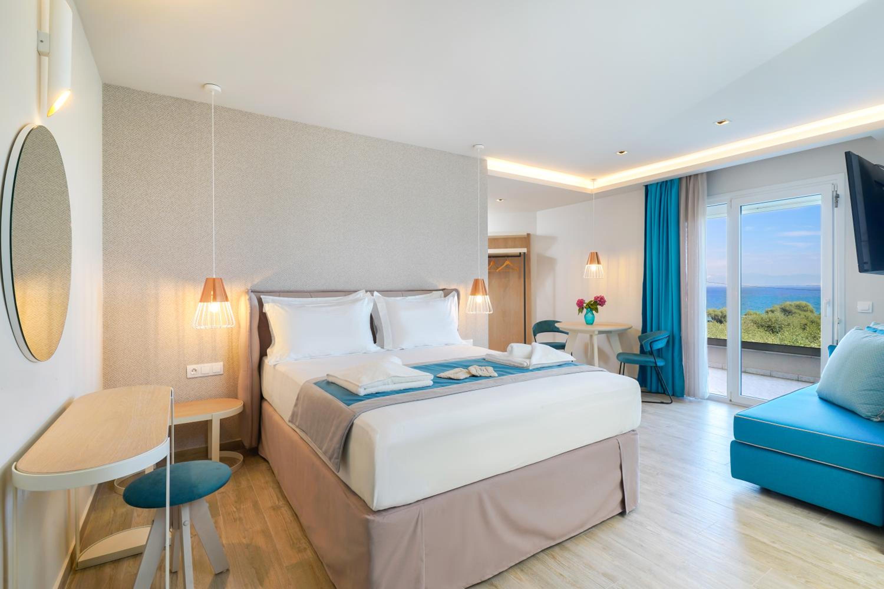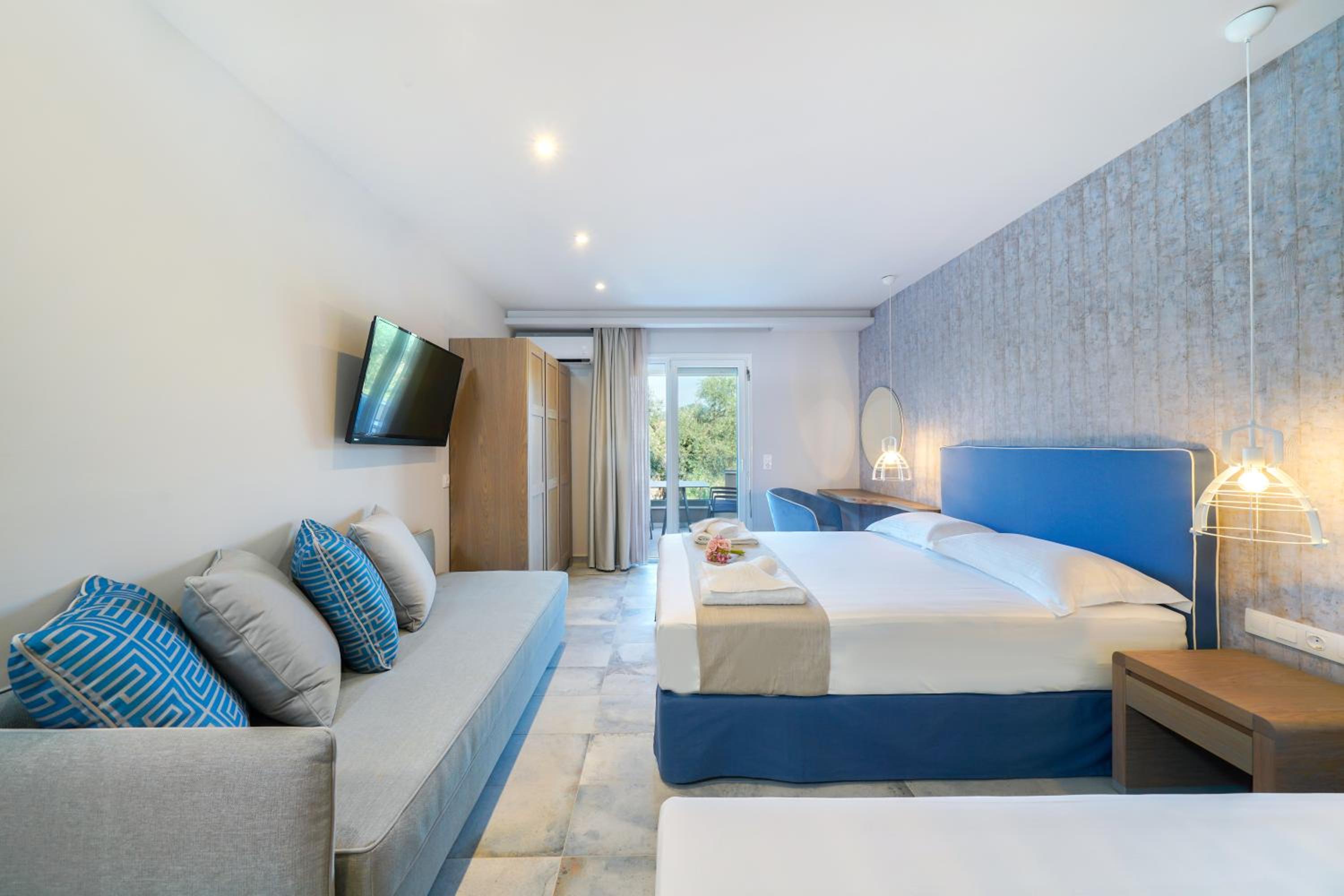 Enjoy stunning pool and garden views from our luxury suites, overlooking the beautiful Papias and Tarsanas Beaches.