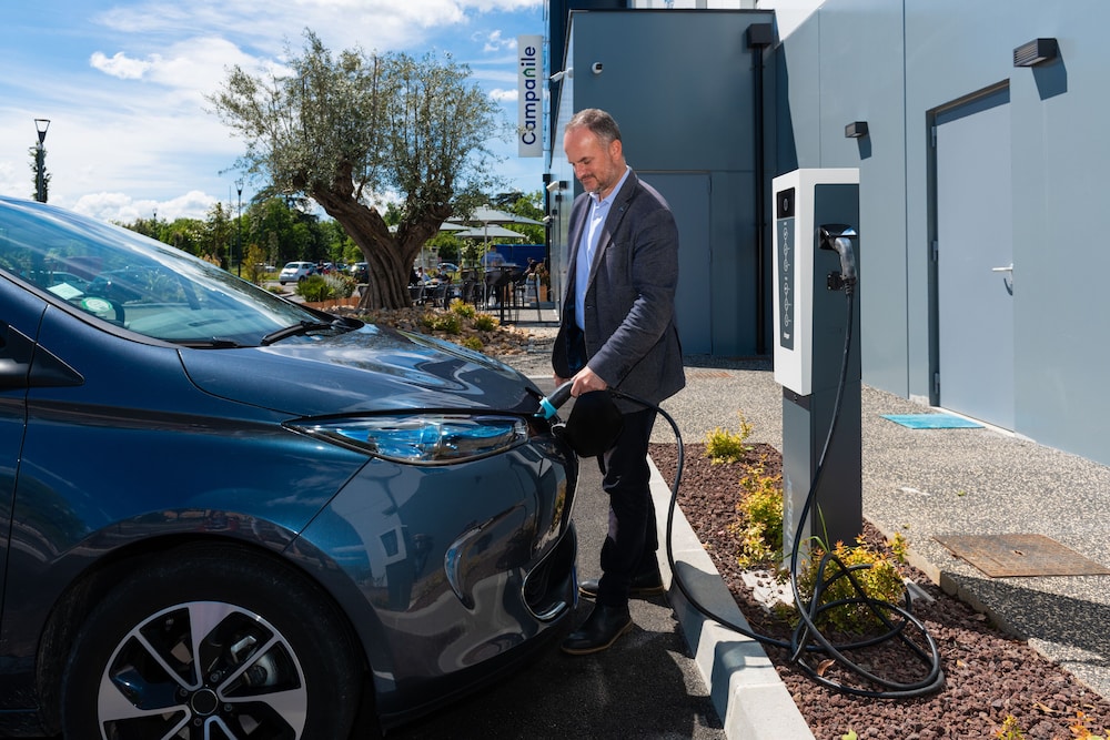 Borne de recharge à dispo gratuitement (attention il s'agit d'une charge lente! mais pour la nuit c'est parfait)
