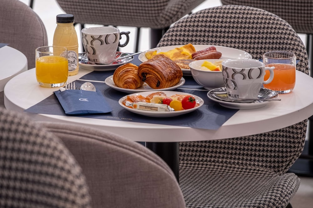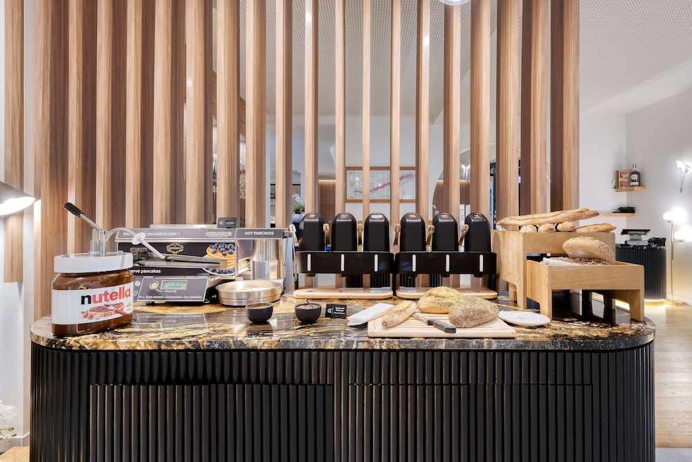 Bel hôtel à l’extérieur de Lyon. L’extérieur est impeccable avec un grand stationnement intérieur et extérieur. Le lobby est très bien décoré et le personnel tout à fait charmant. Le restaurant offre une superbe terrasse. On a adoré le petit déjeuner plutôt qualitatif.