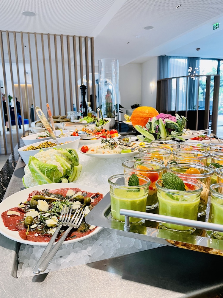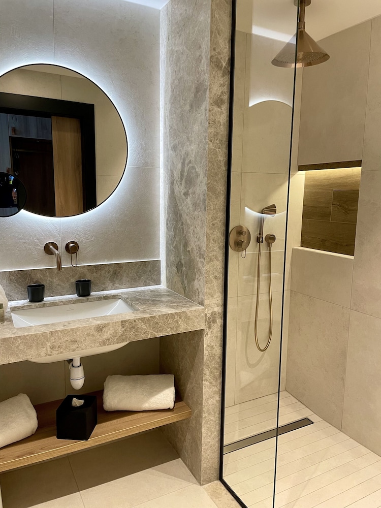 Superbe hôtel très bien décoré les chambres sont spacieuses avec un grand balcon , nombreux rangements, cafetière à disposition peignoir et pantoufles fournis, il y’a une piscine intérieure mais je trouve qu elle n est pas assez chauffée dommage, il y’a un bar et un restaurant… il y a aussi un spa à l étage inférieur. Les massages sont exceptionnels une salle de sport est également à disposition.