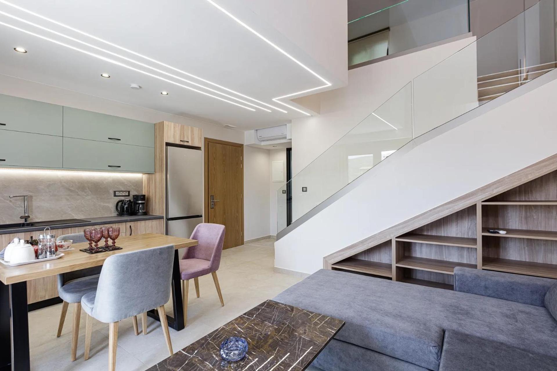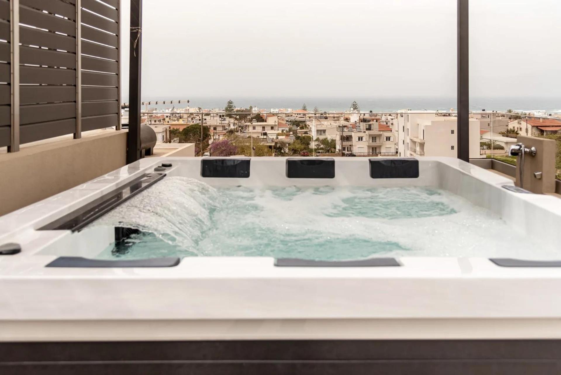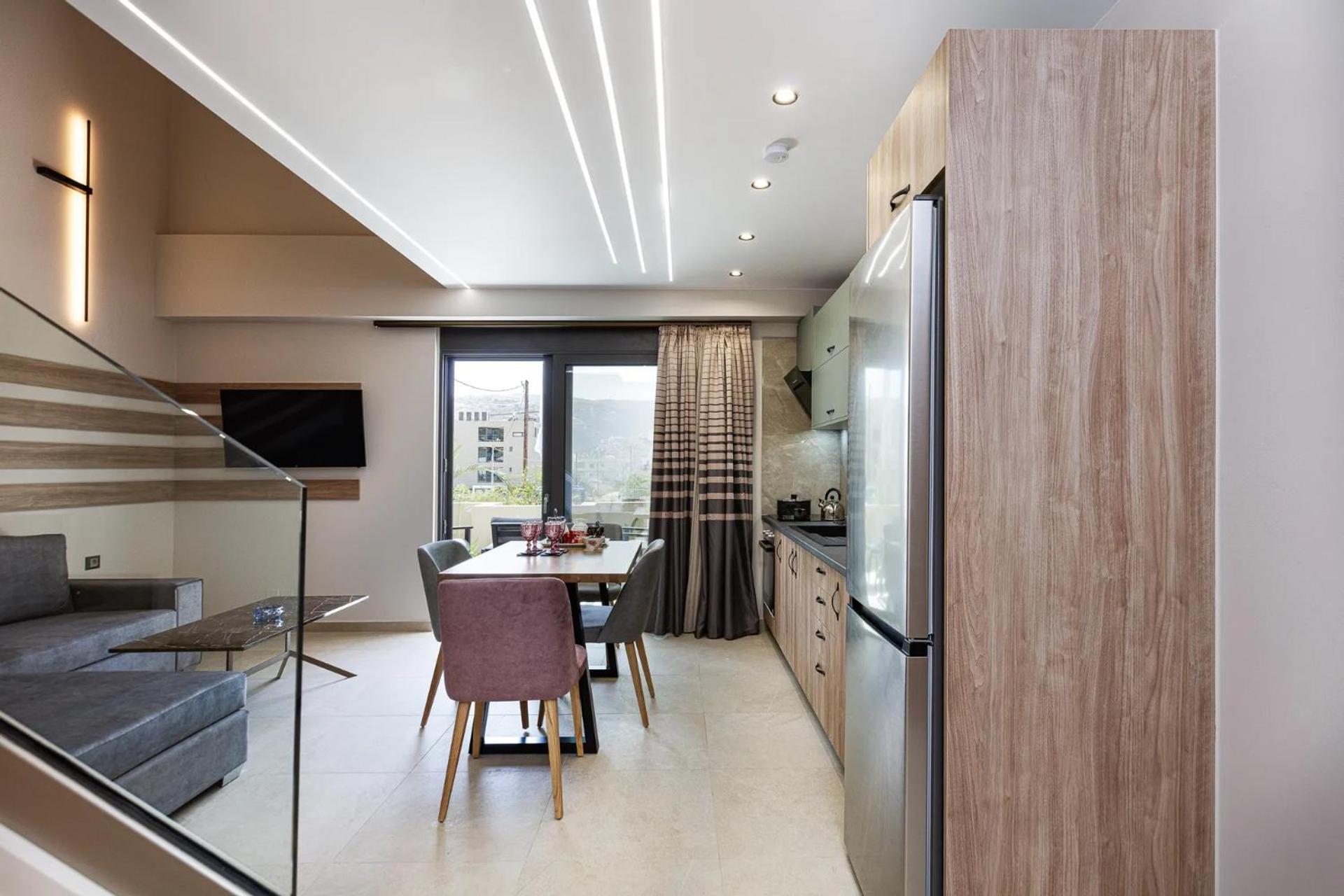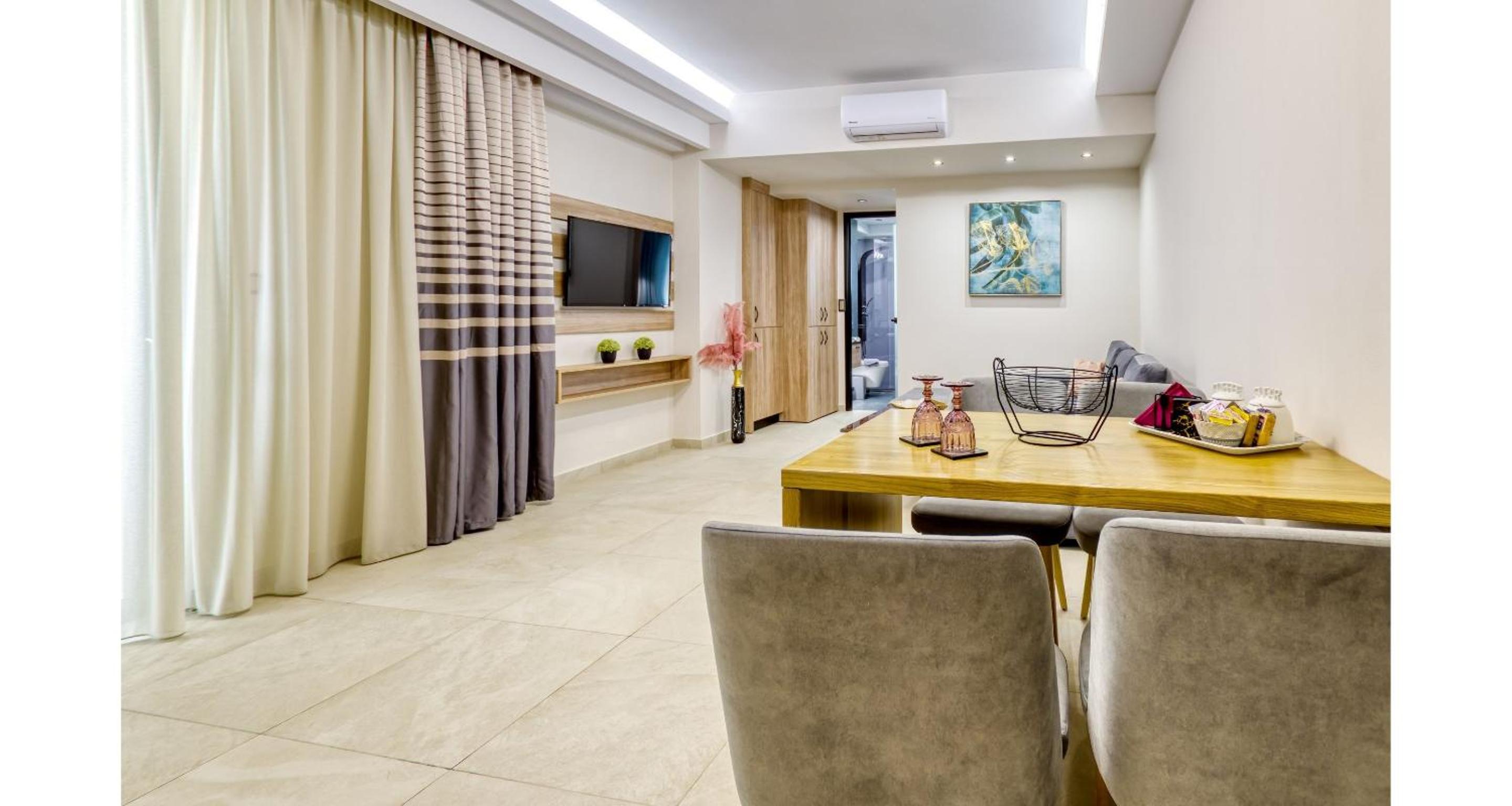 Sapphire Blue Suites in Kissamos offers air-conditioned rooms with modern amenities like a flat-screen TV, balcony, and private bathroom, ensuring a comfortable stay for all guests.