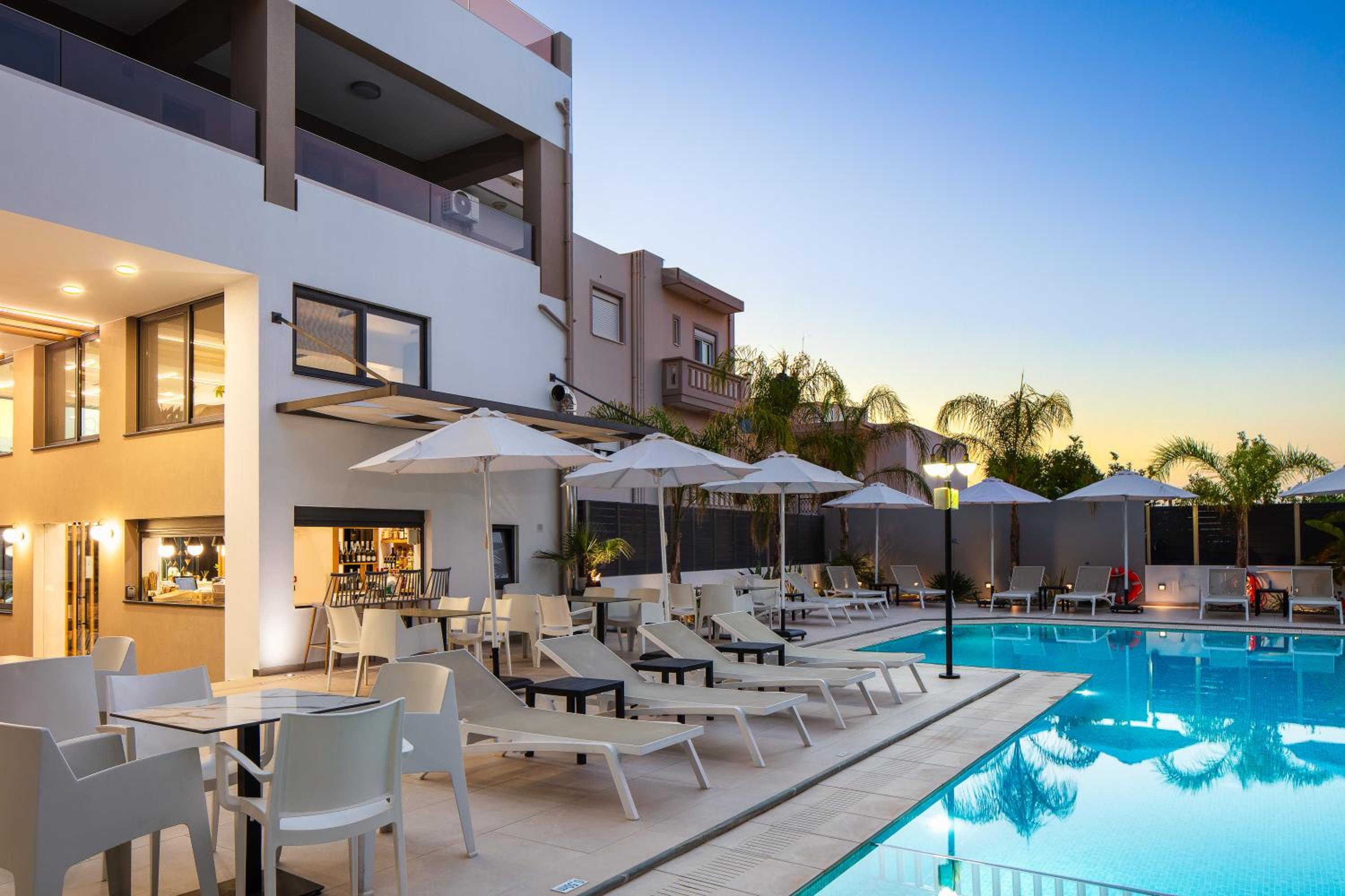 Duży basen z wieloma leżakami. Dobra lokalizacja blisko głównej ulicy turystycznej miejscowości. Personel bardzo miły i pomocny. Apartamenty dobrze wyposażone i nowocześnie urządzone.