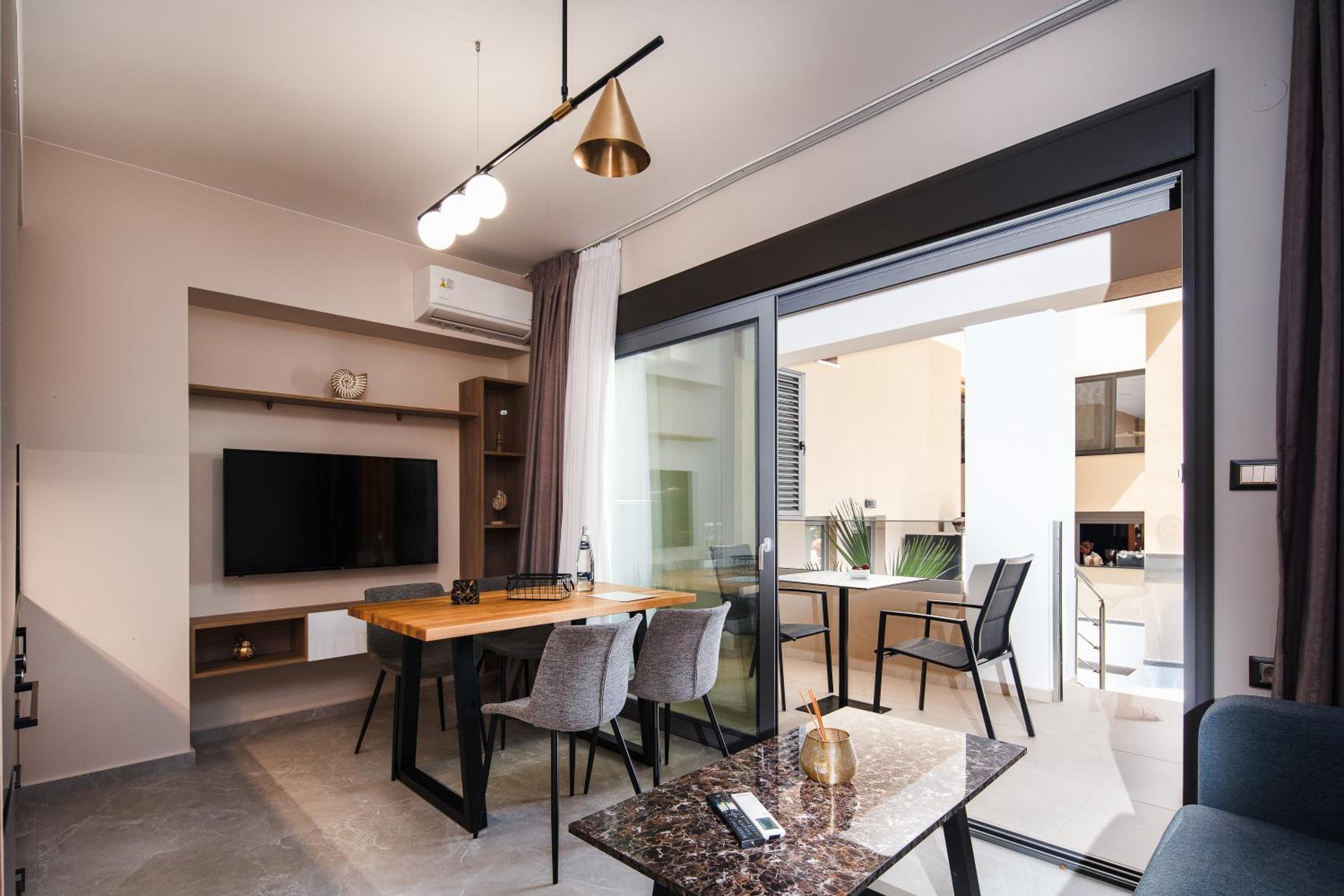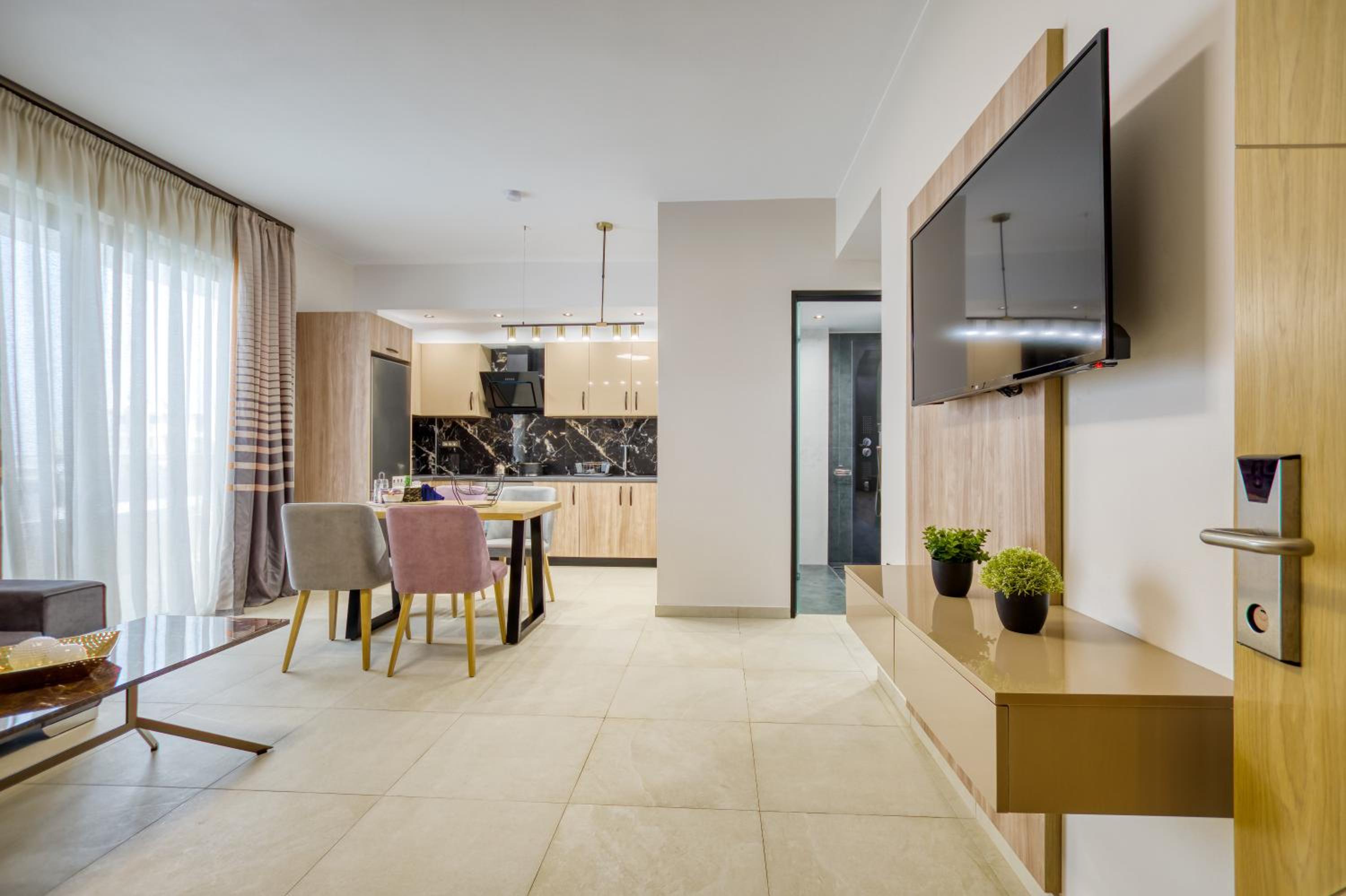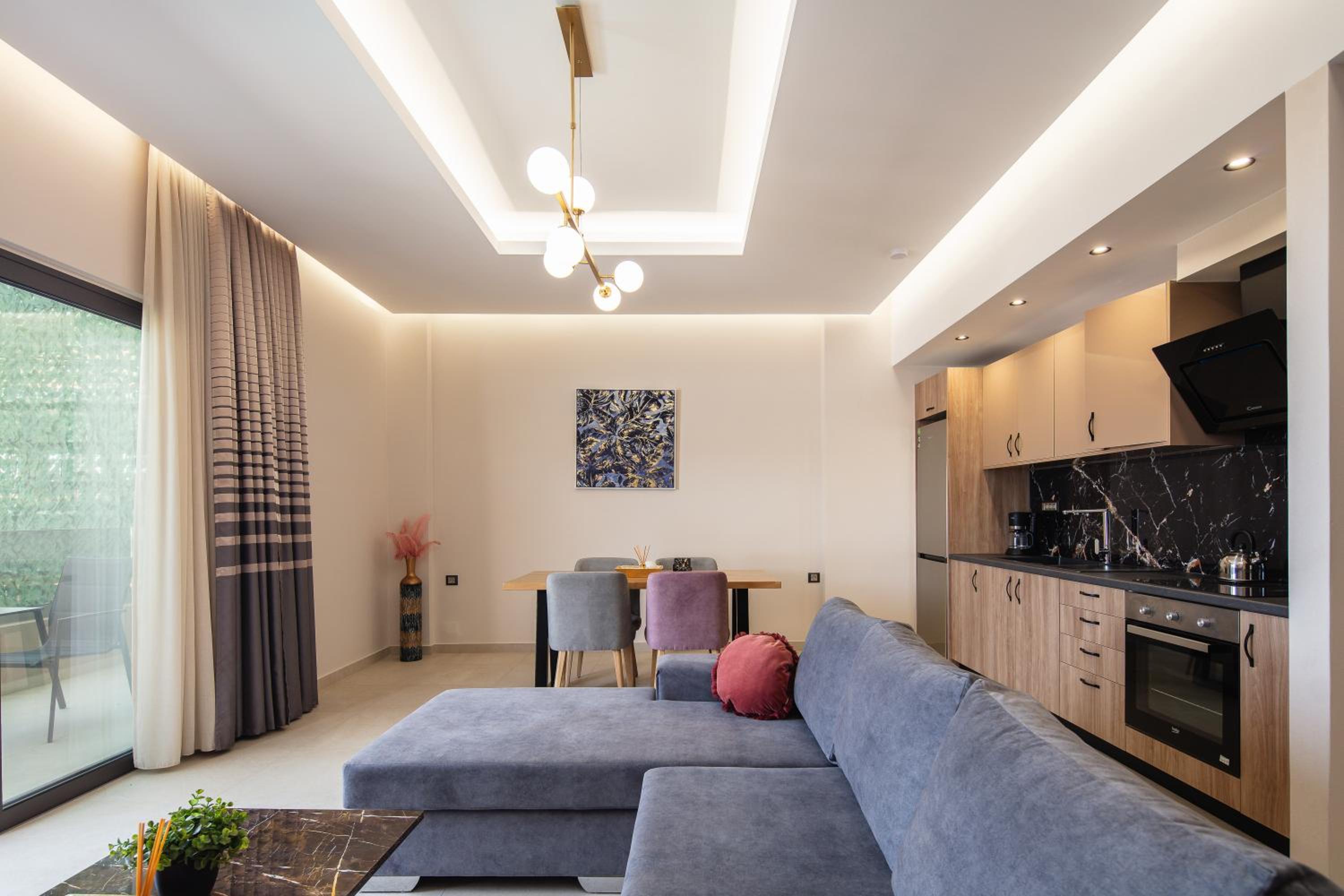 Sapphire Horizon Suites in Kissamos offers elegant rooms equipped with modern amenities such as air conditioning, flat-screen TVs, and private bathrooms. Relax in comfort and style during your stay.