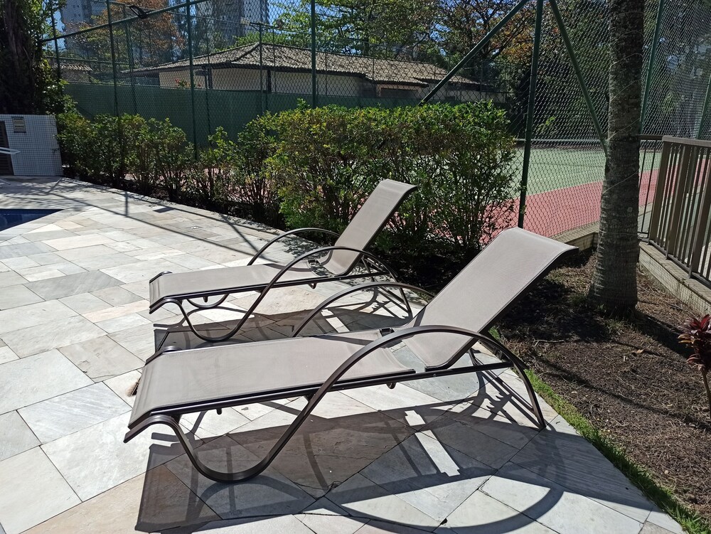 Outdoor Pool and Garden View: Relax by the outdoor pool or enjoy the serene garden view at Barra Prime Flats 18.