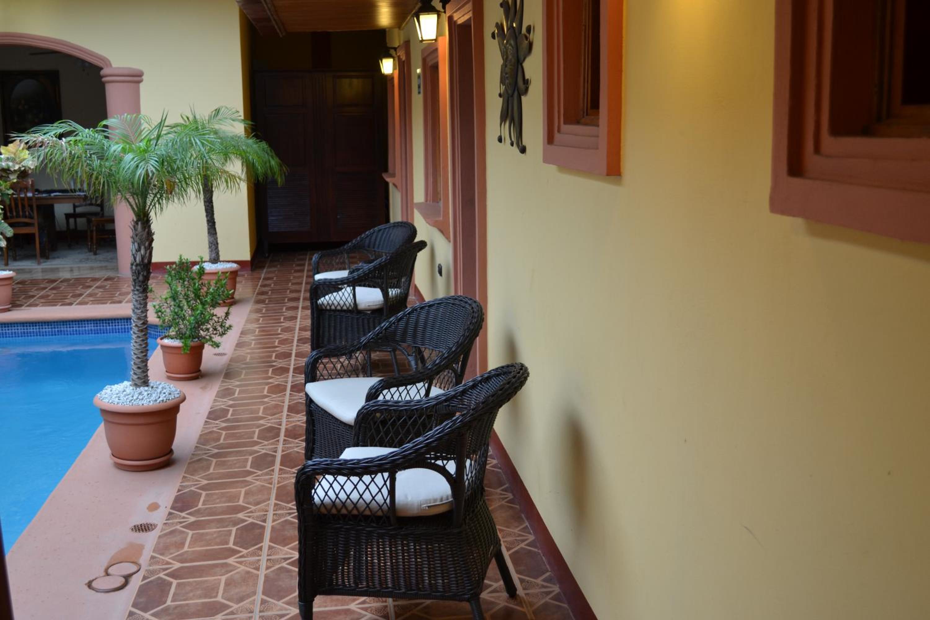 Tranquil Garden Setting: Hotel Guardabarranco offers a serene garden for guests to unwind, providing a peaceful escape from the city hustle.