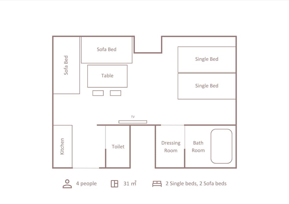 ・1部屋に4人まで泊まれる
