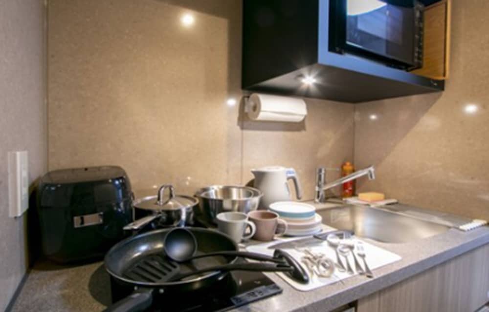 Great location, within 7 min walk to train station. Lots of nearby restaurant choices, including coffee shops. Room was clean and comfortable. All amenities worked properly. Loved the laundry facilities and the fact that detergent (with no scent) was provided as part of the wash cycle. Felt very safe during our stay. There is a grocery store literally right across the street which was nice and also Family mart and 7-11 nearby as well.