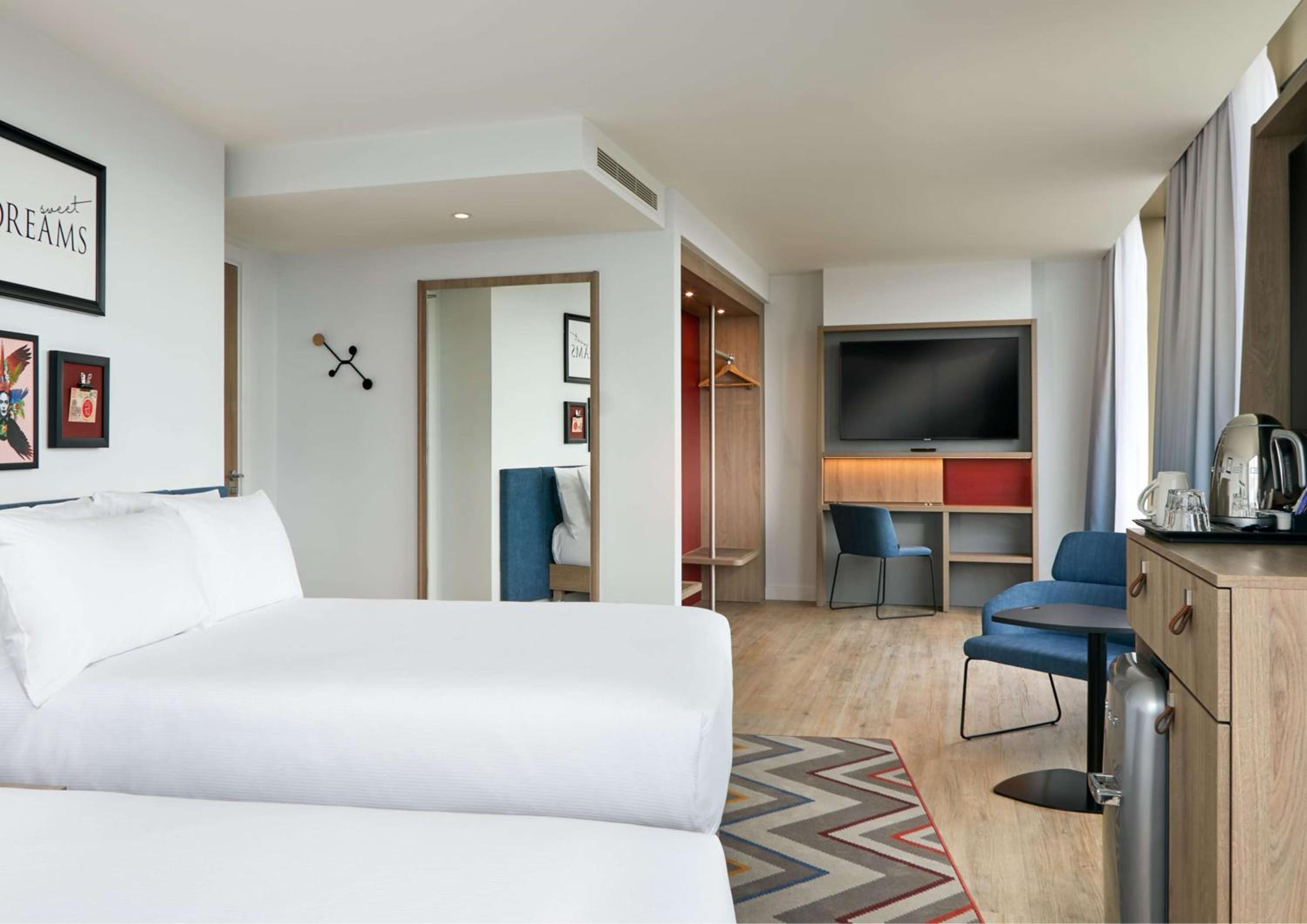 Each room at Hampton By Hilton Dublin City Centre is designed for ultimate comfort, featuring air conditioning, a flat-screen TV, safety deposit box, and a private bathroom with complimentary toiletries. Some rooms even offer stunning city views and come with a kettle for added convenience.