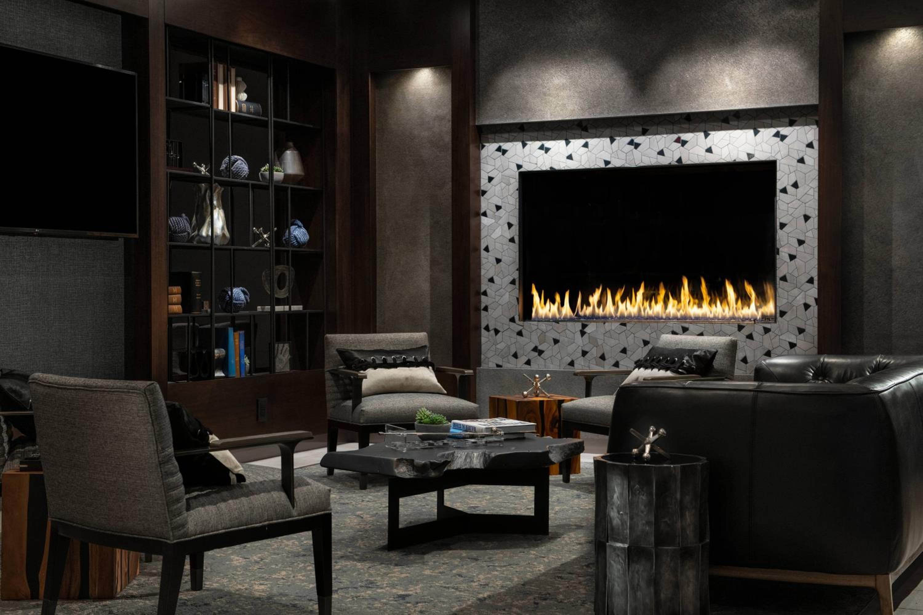 fireplace near breakfast area