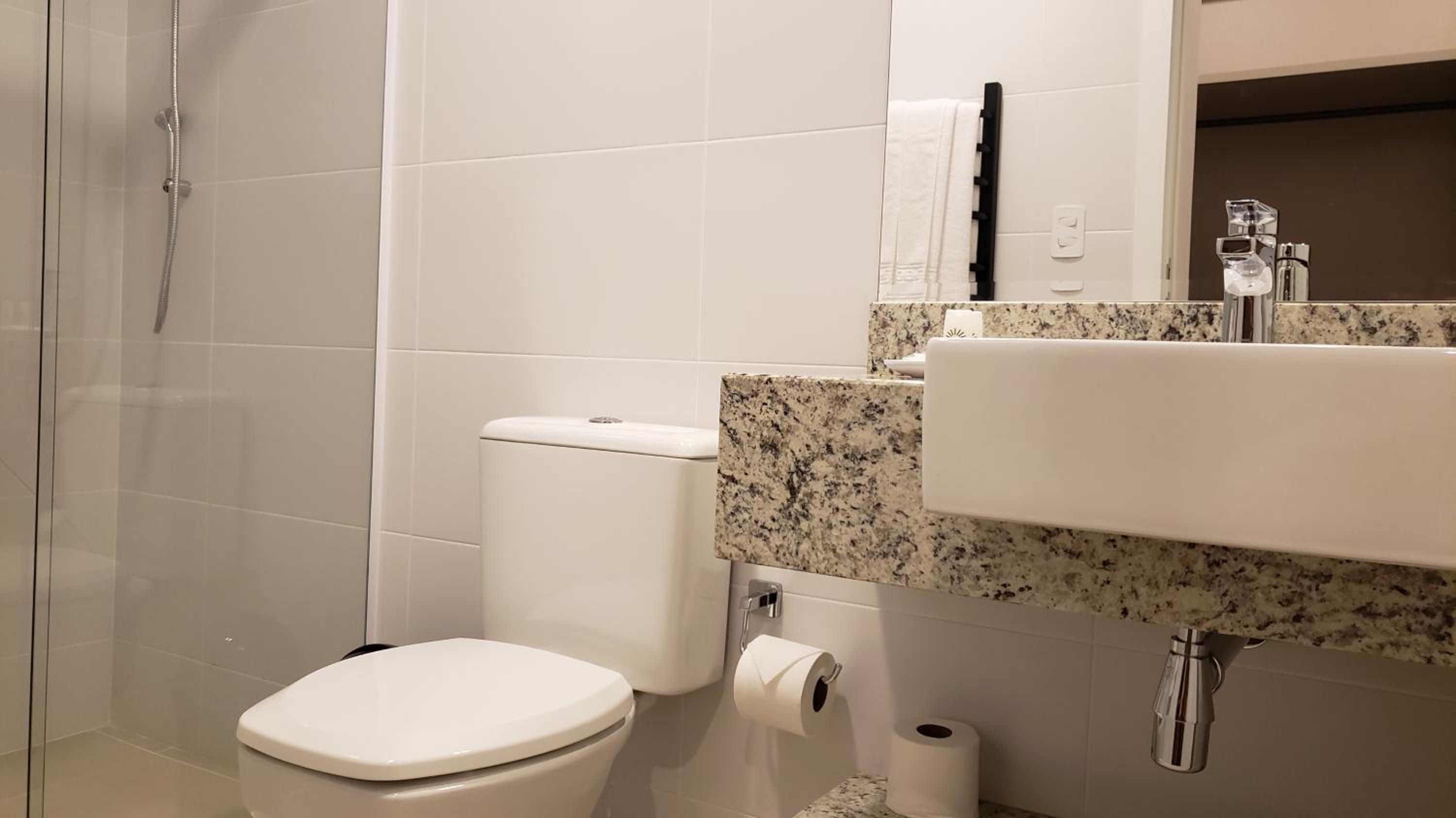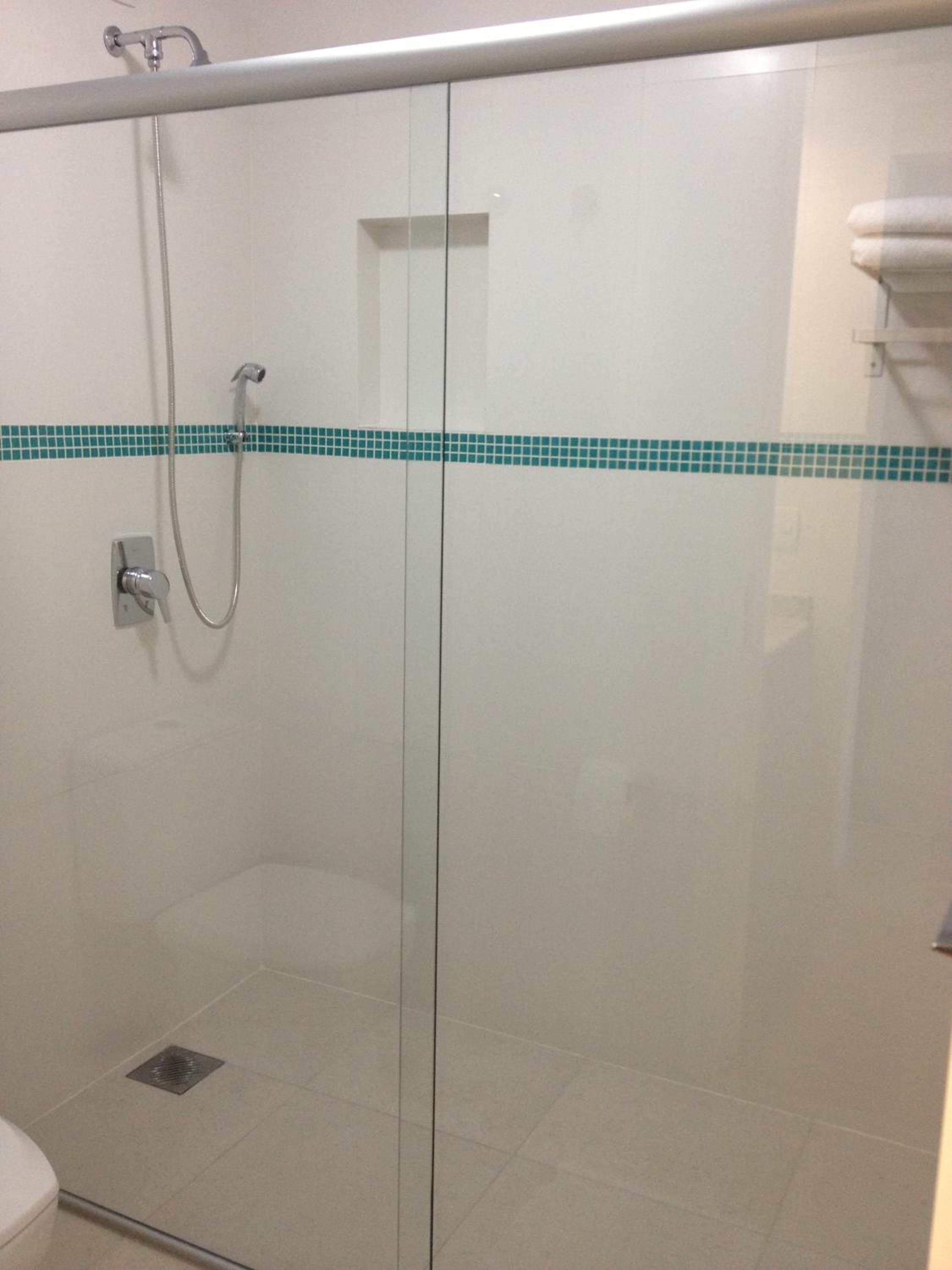 Não tinha tapetinho de chão para saída do box do banheiro.