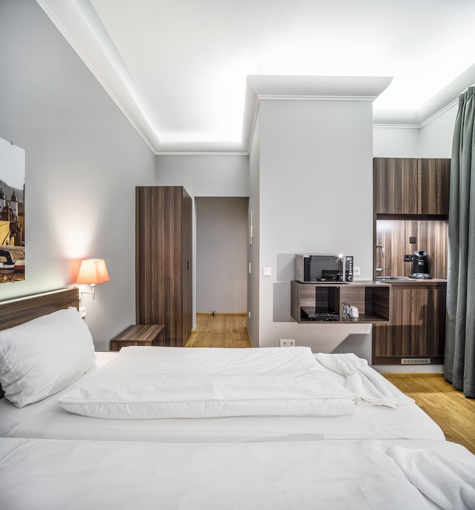 Ótima localização, próximo ao centro, é possível visitar o pontos turísticos a pé. Ótima acomodação, quarto grande , cama muito confortável, banheiro e chuveiro ótimos, tudo muito limpo, cozinha equipada. Super recomendo,e, se um dia voltar tentarei me hospedar aqui novamente. Ah, o pessoal da recepção super educados e prestativos.