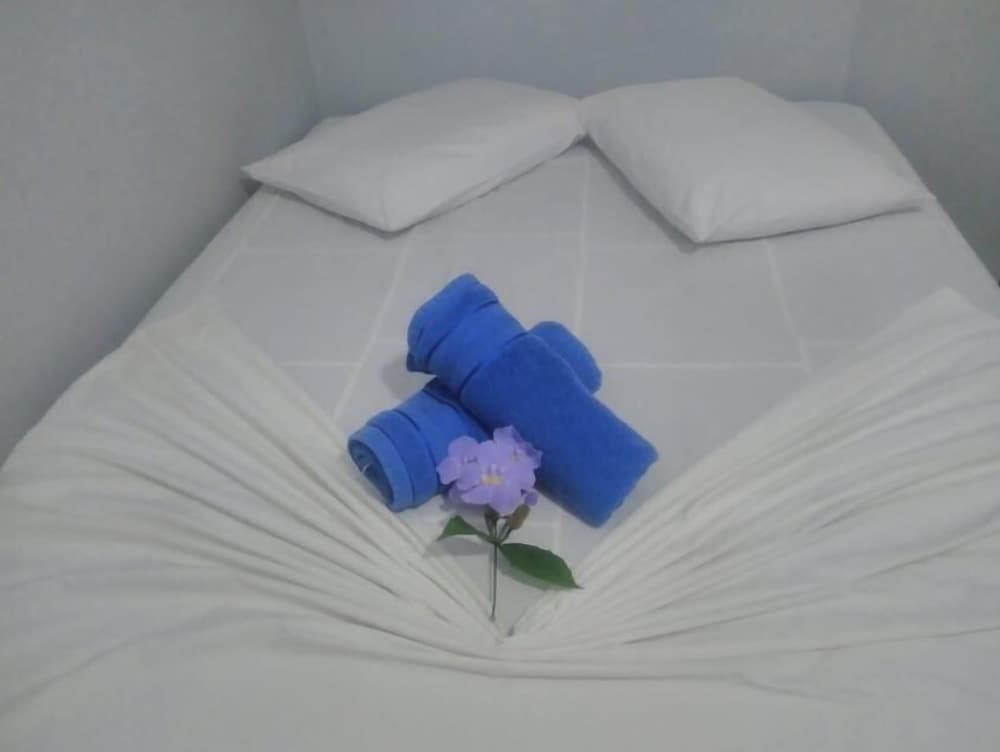 Logo que chegamos já nos sentimos enganados porque reservamos nessa pousada justamente porque tinha ar condicionado, mas chegando no quarto, era apenas ventilador de teto. A recepcionista disse que naquele momento não tinha um outro quarto para nos realocar e passamos a primeira noite nesse. A cama era muito desconfortável, com colchão duro. O chuveiro esquentou muito pouco, oferecendo banho morno. Ao questionar na recepção, a moça disse que era preciso esperar 4 minutos para a água esquentar. Em uma das toalhas, manchada com o que parecia ser água sanitária, tinha um cabelo feminino. Sem contar que nos sentimos em uma prisão. Nesse quarto, a janela tinha uma grade por dentro, causando uma sensação péssima!