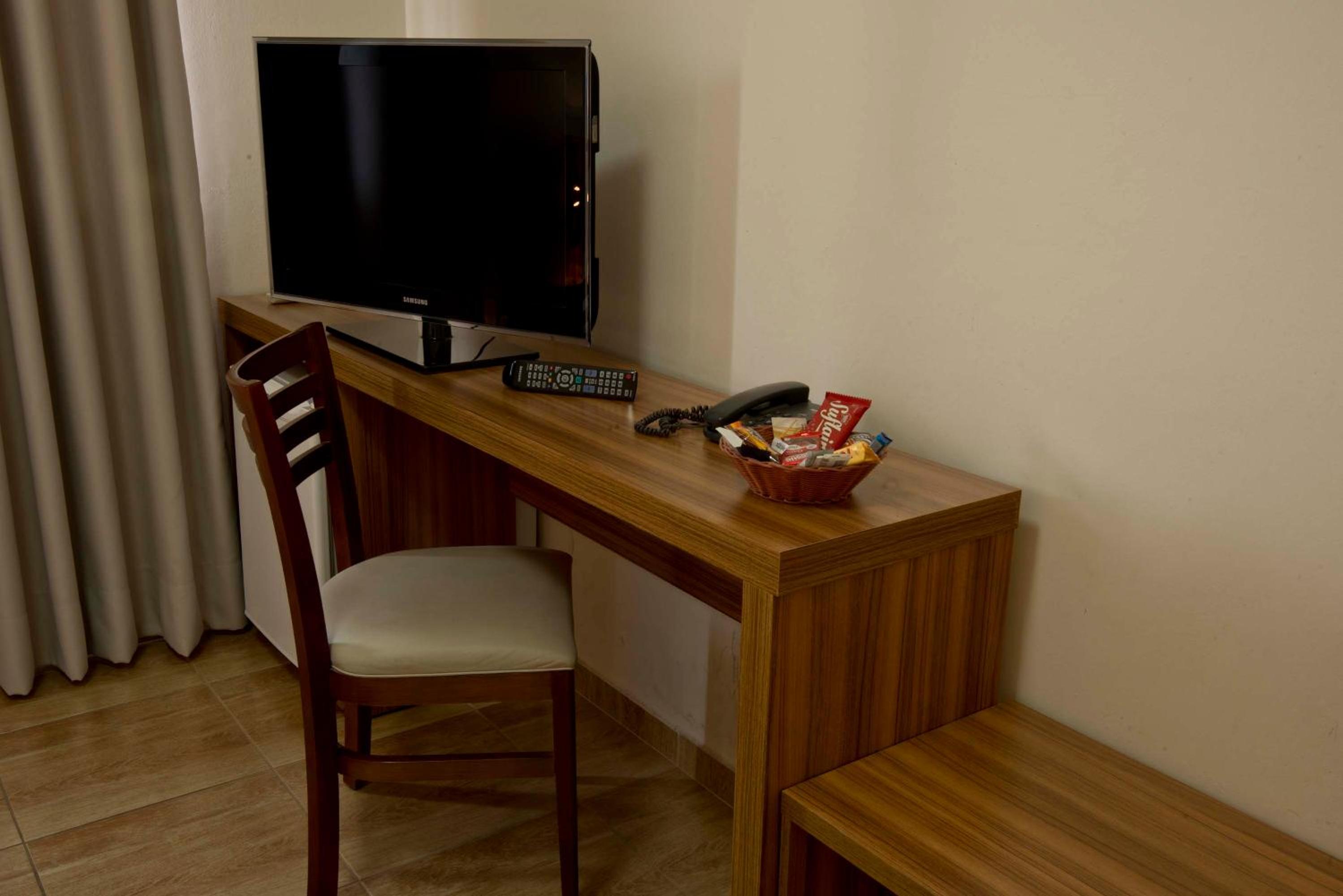 Academia e esteira em péssimas condições, cama dura, Wi-Fi mediano, quarto pequeno, frigobar demora muito para esfriar as bebidas.