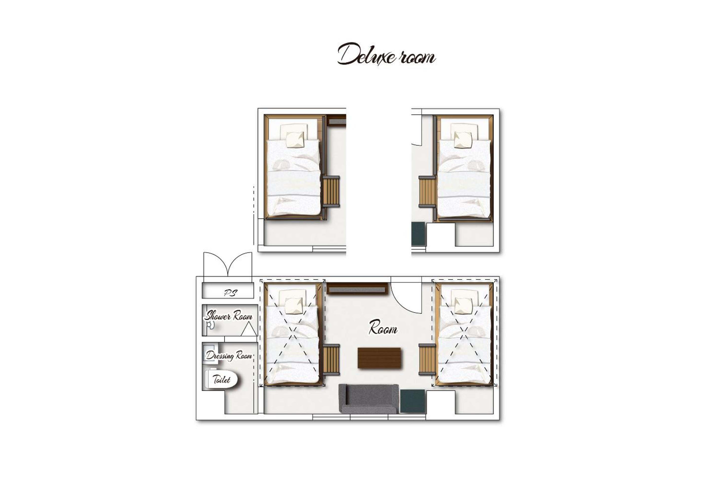 狭いながらも2段ベッドで開放感もありベッドも広いので子供と添い寝しても狭く感じず快適でした、ウェルカムドリンクでもほっとしました