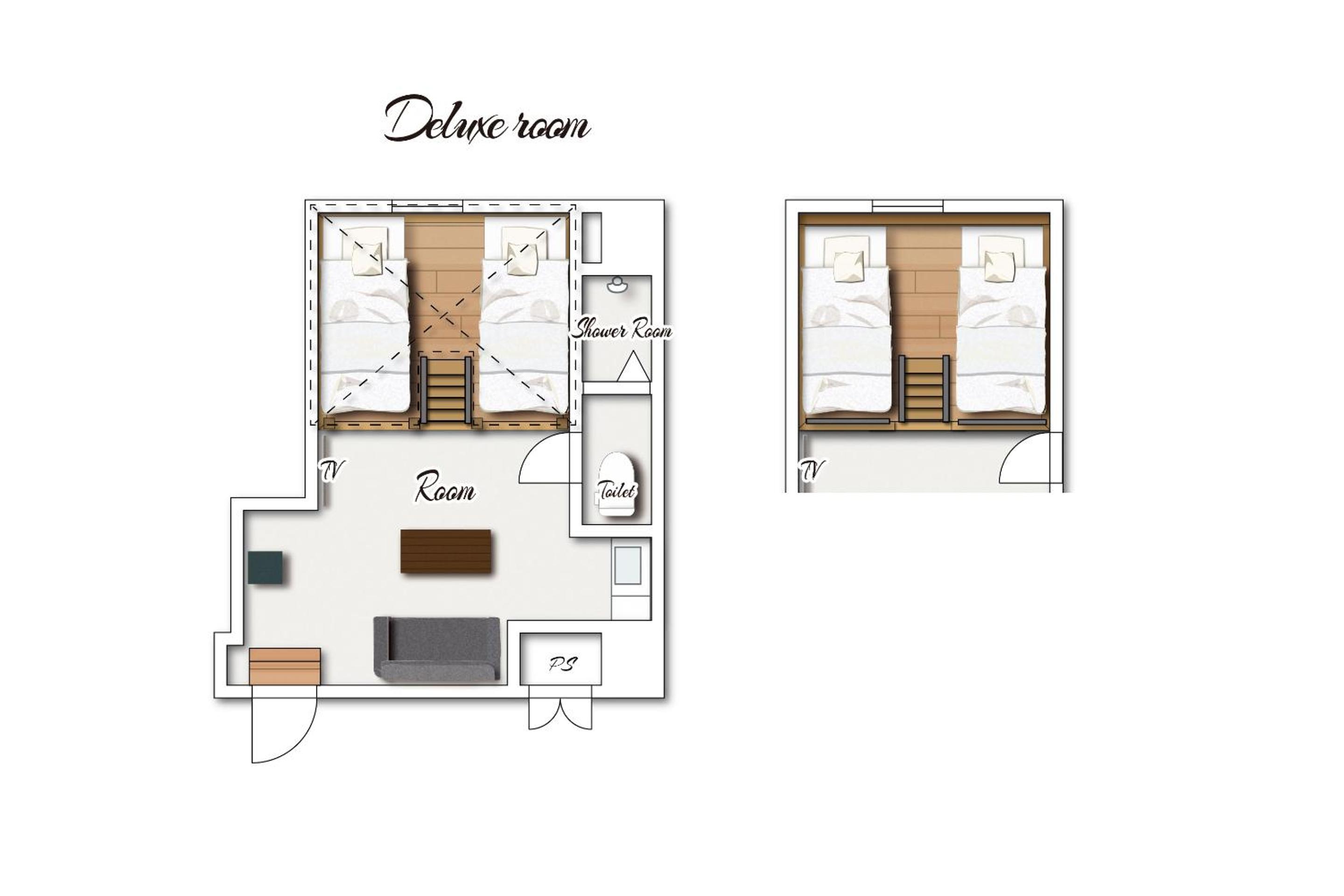 2段ベッド風のダブルベッドがあるところ
