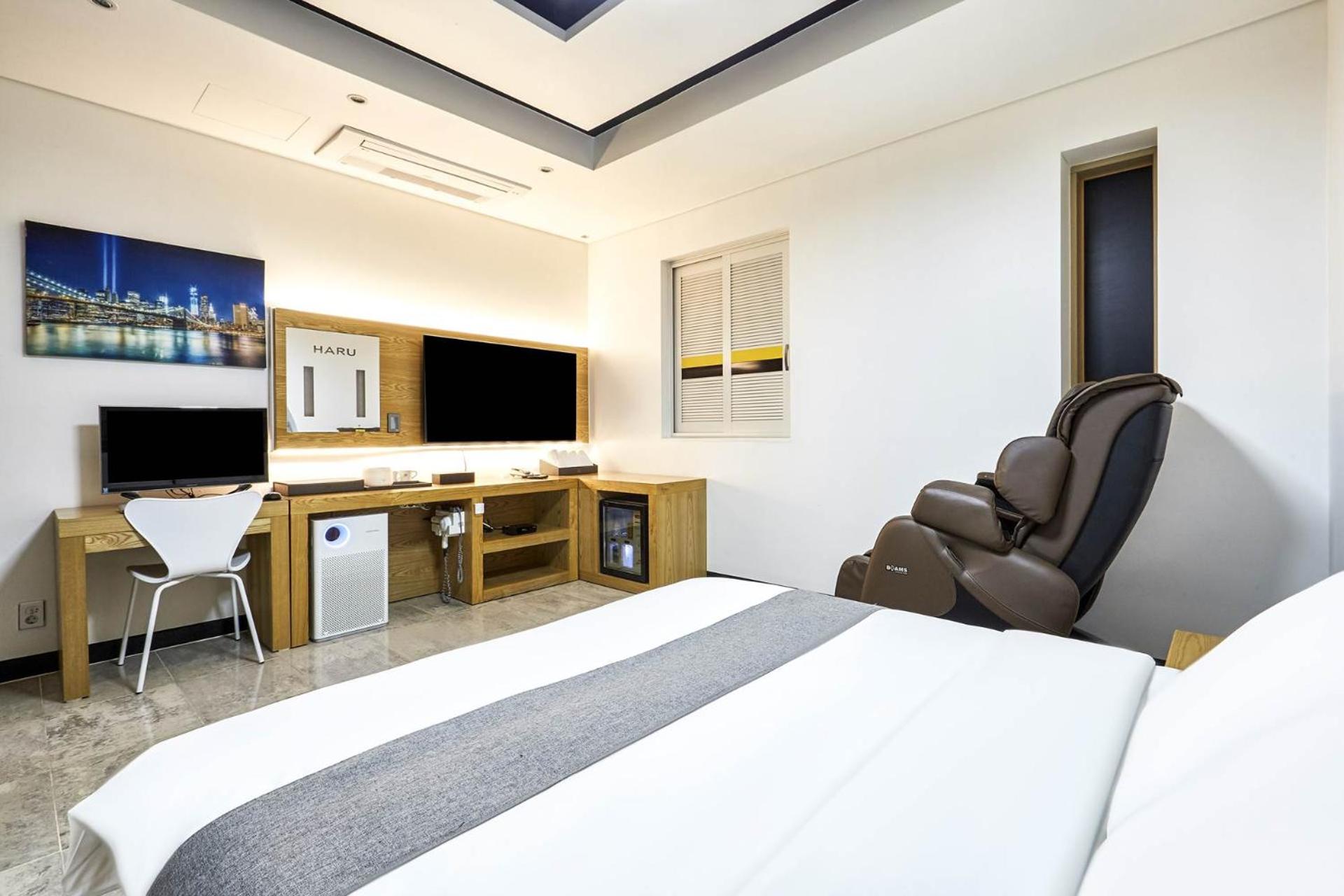 Experience tranquility at Hoengseong Haru Self check-in Hotel surrounded by a lush garden, offering a peaceful retreat away from the city hustle. Enjoy garden views from each room and relax on the terrace, embracing nature's beauty.