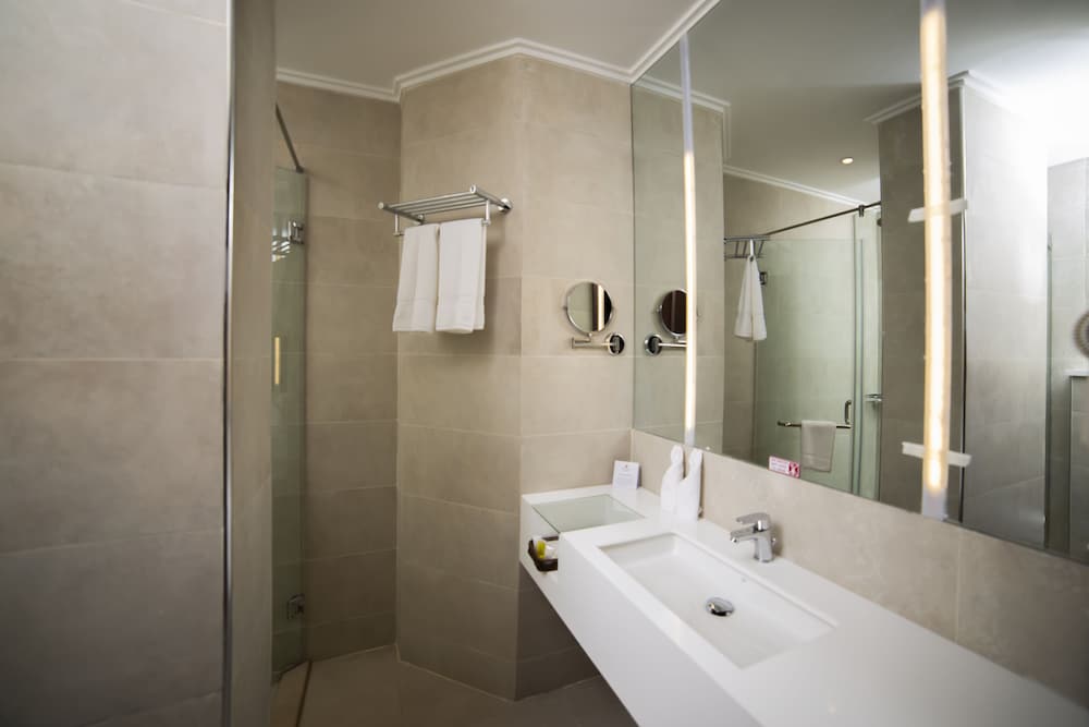 Bathroom was clean with amentities as well like shaving kits and toothbrushes.