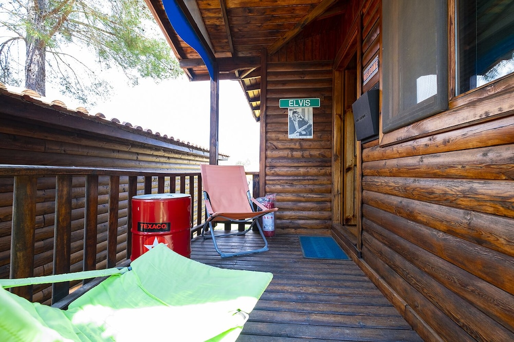 The log cabins are a little tired but a bargain at the price. The pool was ours for the duration. Chickens roamed the site freely, which the kids loved.