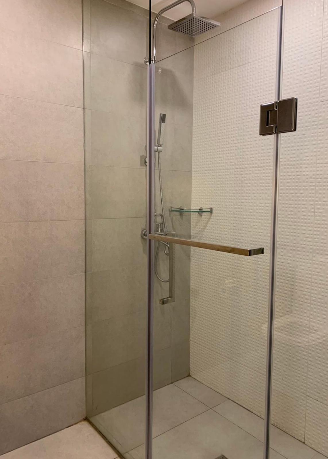 Water seeping out of the shower & pooling on the floor. The quality & taste of the food is below par.