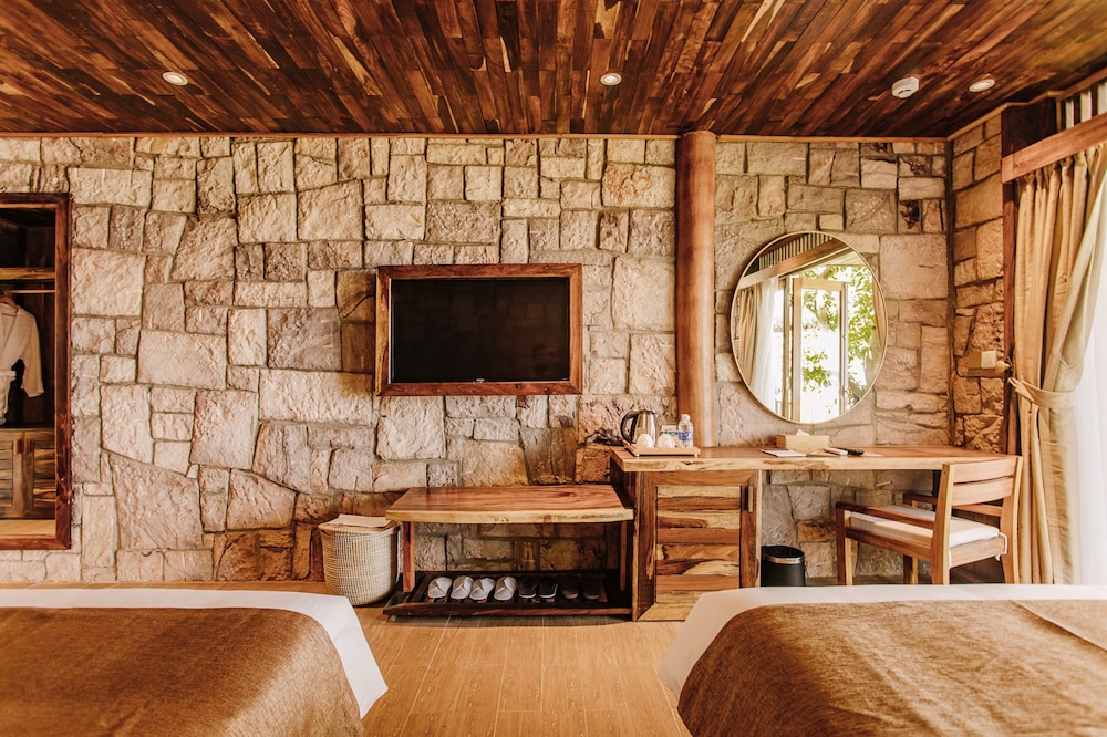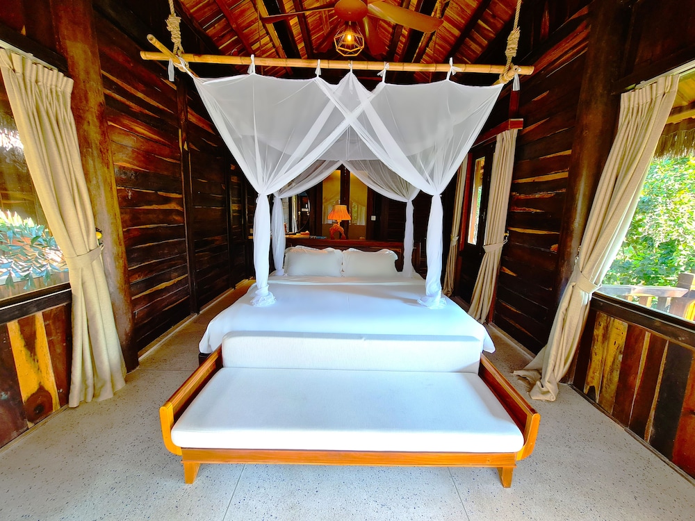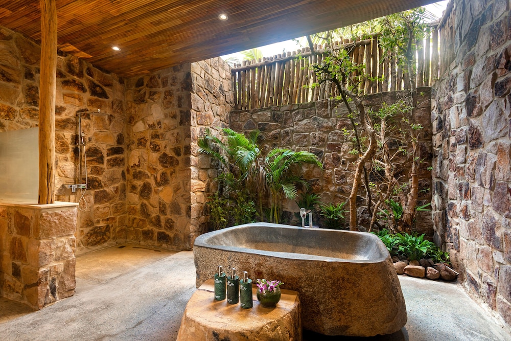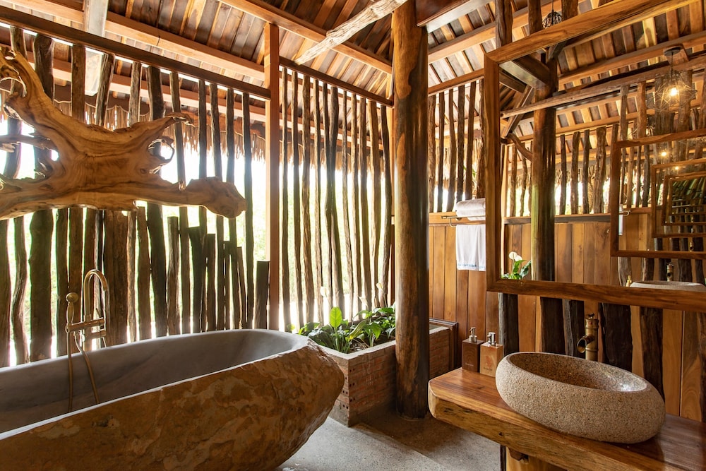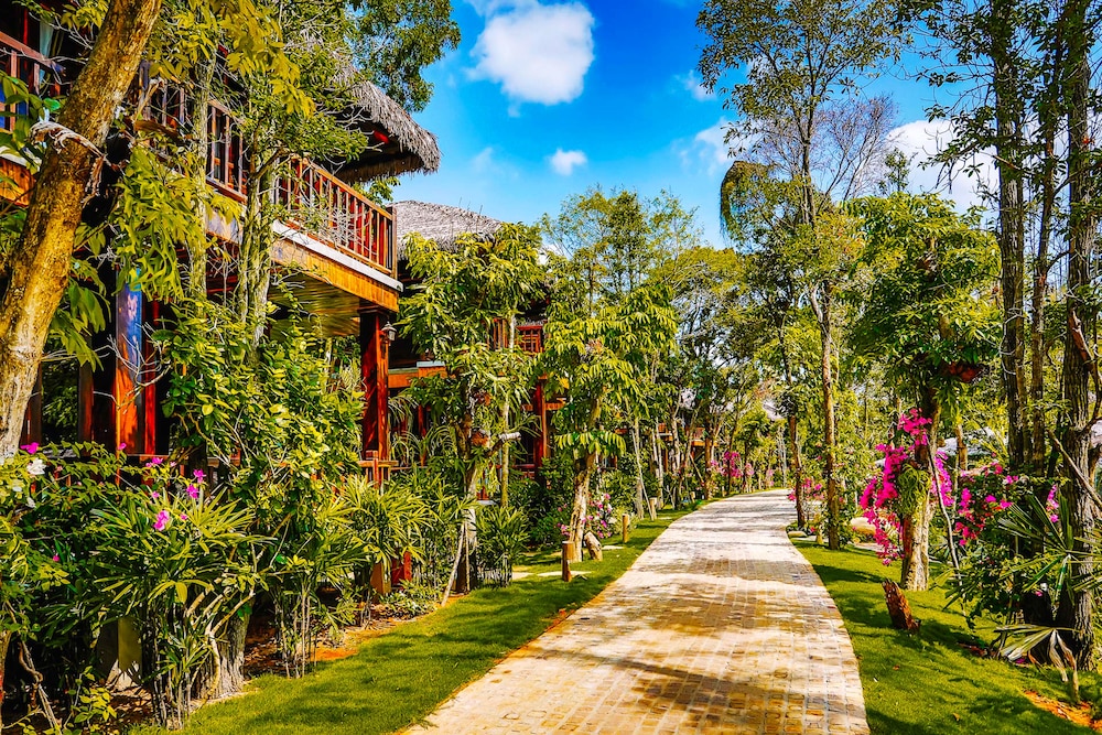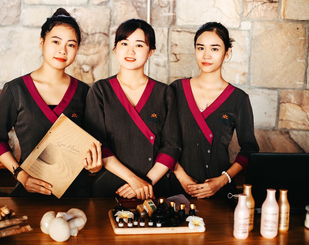 The resort was very nice looking, and the stuff were nice. However, two major issues bothered us: the bathroom is half outside- that means an outer wall is made of a wooden fence that does not close the room, leaving some open space. The space is actually so open that birds poo in the tub, which is right below the open part... (and no one bothers to clean the tub). Also, we did not get any fruit in the room, unlike all other hotels we've been to in Vietnam, and in general, the place felt more like a camping place than the luxurious resort it's supposed to be.