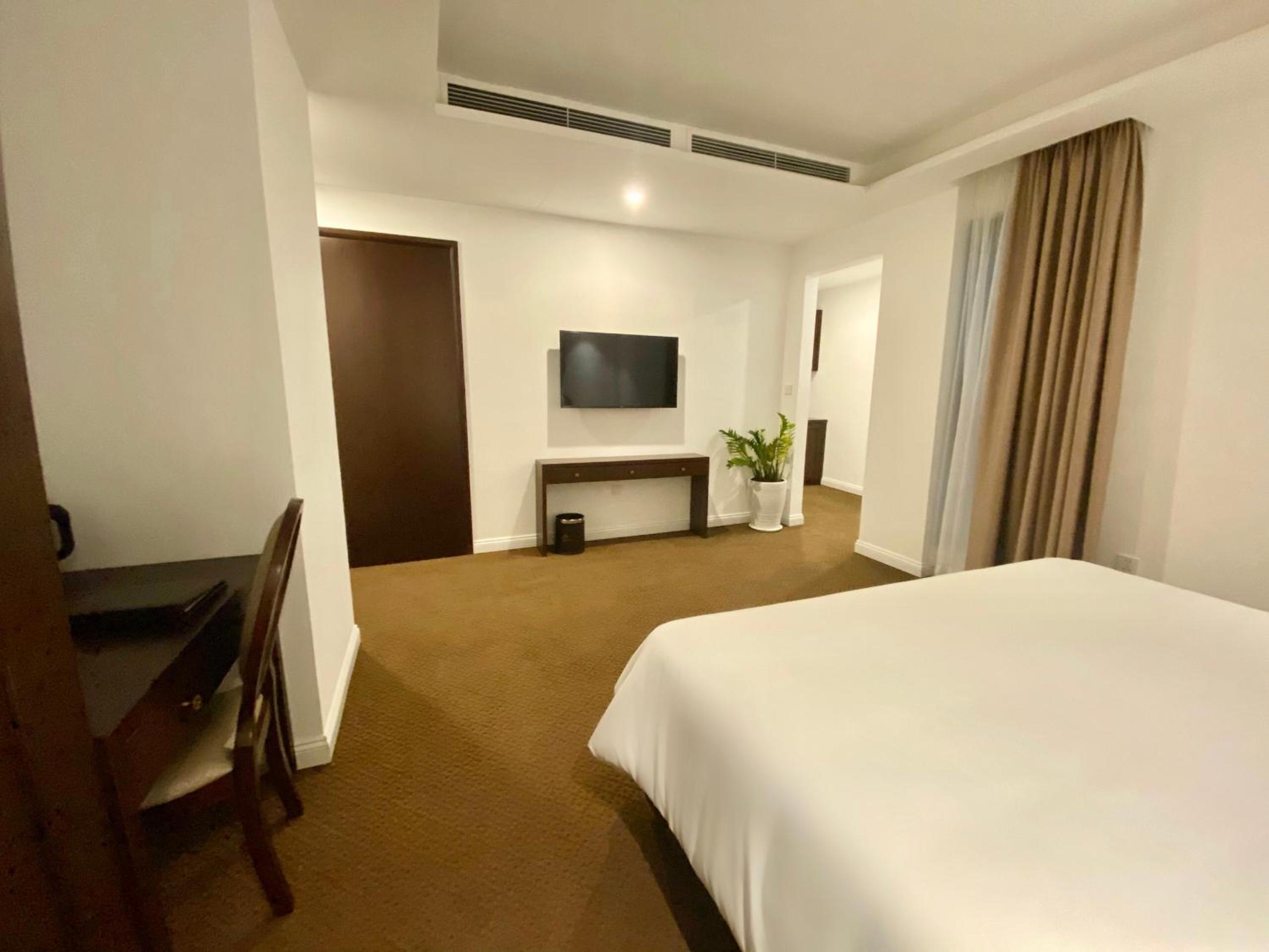 房间也很好,比较安静,设备都不错,卫生间很大,热水很足来很快。在房间能听到社区广播整点的红歌也很有趣。