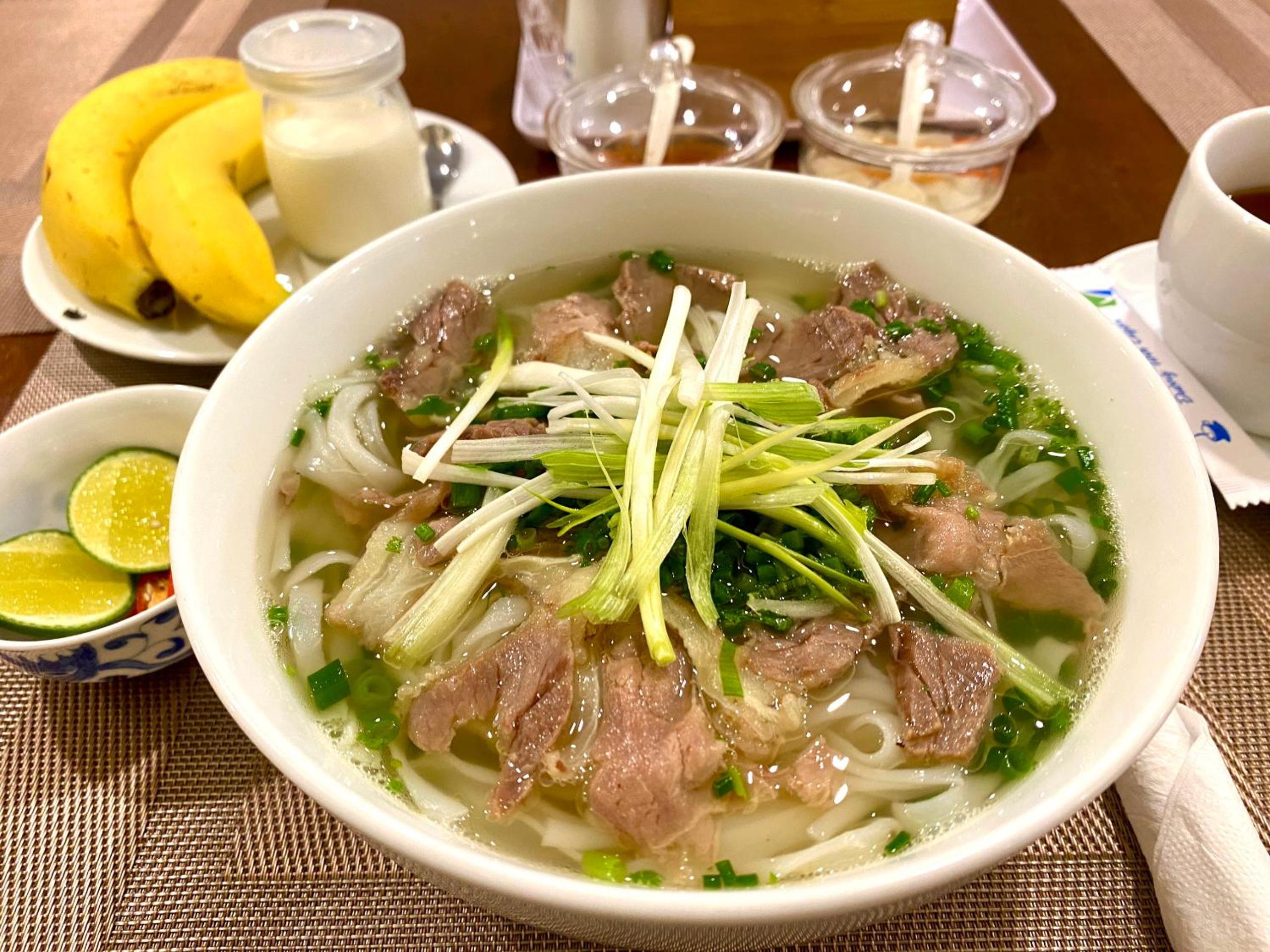 特别值得一提的是越式早餐非常好吃!是提前一天点了菜第二天现做的,每天都配有水果和各种喝的。我们把越式早餐所有款式都吃了,都很好吃。还有很多西式早餐选择,不过我们没有吃。
