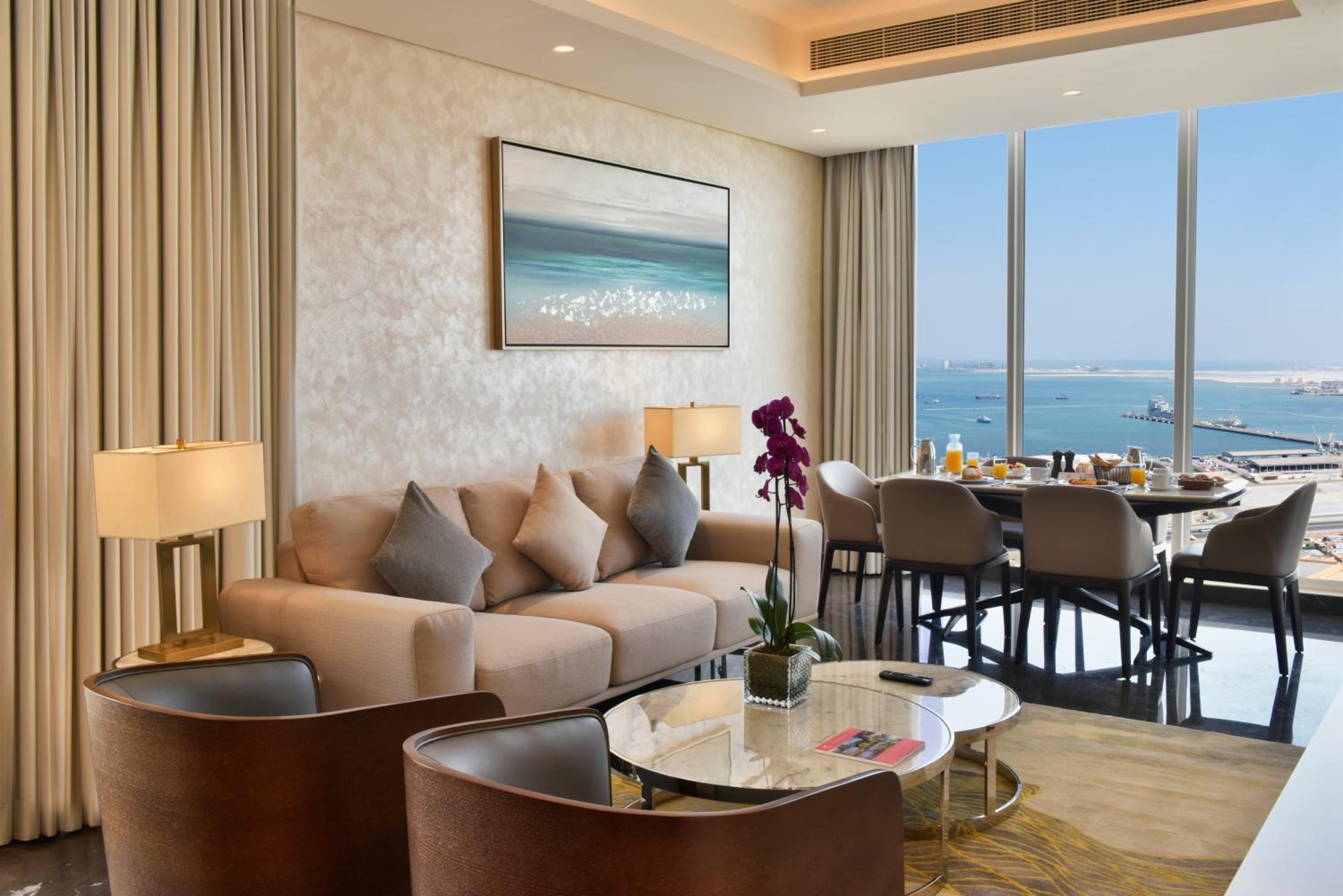 Experience comfort and style in every room at Swiss-Belsuites Admiral Juffair, featuring air conditioning, flat-screen TVs, and private bathrooms. Select rooms even offer terraces with breathtaking sea views, ensuring a memorable stay.