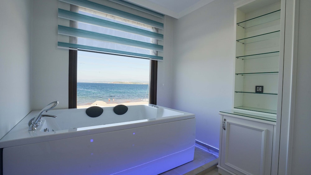 Otel deniz kıyısında odanızdan çıkınca 2dakikada denize girebiliyorsunuz, ancak otelin bulunduğu bölgede deniz maalesef güzel değil. İskele olmadığı için sahilden giriyorsunuz, aşırı taşlık ve çok fazla yosun var. iskele yapıldığında bu sorun olmayacaktır.